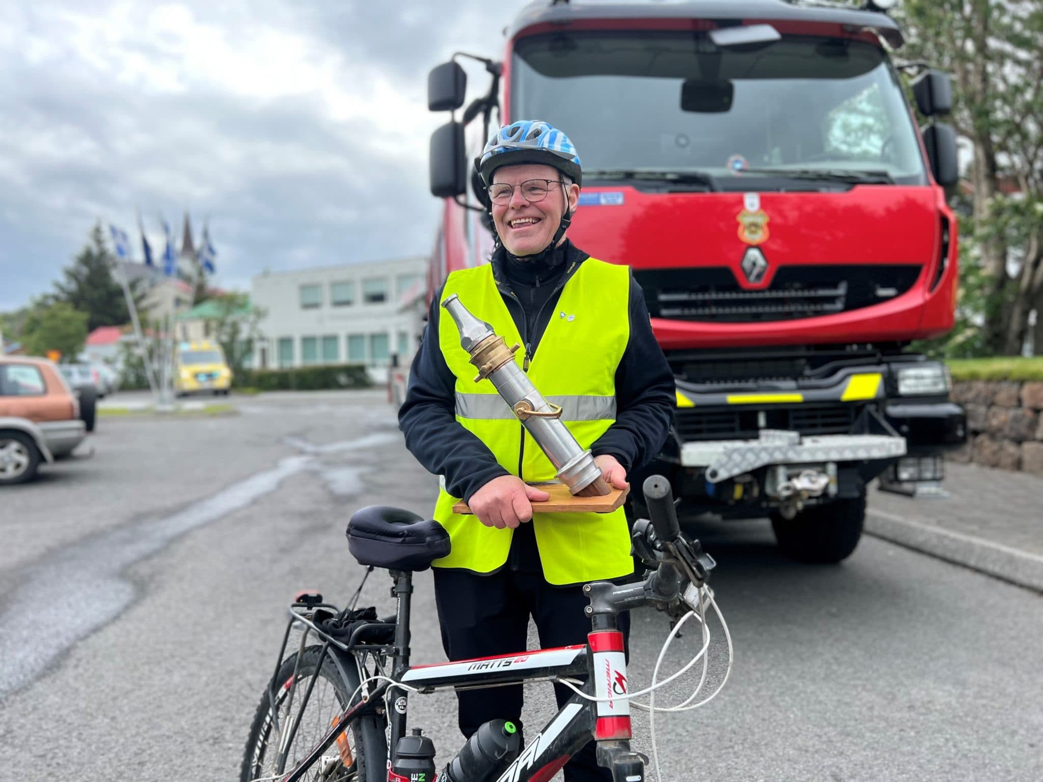 "saveContent": "Síðdegis í gær renndi Borgnesingurinn Þorsteinn Eyþórsson á hjólinu sínu inn í Borgarnes og lauk þar með því afreki að hjóla Vestfjarða-hringinn á tíu dögum. Þorsteinn lagði af stað 12. júní síðastliðinn en í fylgd með honum var Anna Þórðardóttir eiginkona hans á húsbíl sem þau notuðu sem áningarstað. Þegar Þorsteinn, eða Steini eins og hann er gjarnan kallaður, kom inn í bæinn fékk hann heiðursfylgd lögreglu. Auk þess fylgdu hjólreiðagarpar úr Hjólreiðafélagi Vesturlands honum í gegnum bæinn auk þess sem Jóhann Harðarson frá Hraunsnefi fylgdi honum á hjóli frá Svignaskarði. Steina biðu mikil fagnaðarlæti við Skallagrímsgarð þar sem fjöldi fólks hafði safnast saman til að taka á móti honum. Slökkviliðið var mætt á svæðið með þrjá bíla sem biðu með blikkandi ljós Steina til heiðurs en hann hefur verið félagi í Slökkviliði Borgarbyggðar í áratugi. Slökkviliðið gaf Steina brunastút frá Coventry sem minjagrip í tilefni afreksins. ,,Þetta er breskur stútur frá Coventry og er þetta einn af stútunum sem notaður var til að slökkva í borginni þegar Þjóðverjar gerðu ofsafengna loftárás á Coventry í september 1942. Steini fær að hafa þetta sem stofudjásn frá okkur félögunum en hann er vel að þessu kominn,“ sagði Bjarni Kr Þorsteinsson sem afhenti Steina stútinn fyrir hönd Slökkviliðs Borgarbyggðar.\r\n\r\nSteini segir í samtali við Skessuhorn að vel hafi gengið að hjóla Vestfirðina en ferðin gekk eftir fyrir fram planaðri áætlun. Steini segist hafa hjólað svolítið eftir veðri en hann tók einn hvíldardag í þjóðhátíðardags rigningunni á Ísafirði 17. júní. Lengsta vegalengdin sem hann hjólaði á einum degi voru 107 kílómetrar laugardaginn 18. júní: Hjólaði hann þá frá Ísafirði til Tálknafjarðar, yfir bæði Gemlufallsheiði og Dynjandisheiði.\r\n\r\nÞess má geta að Steini er 68 ára og byrjaði að hjóla fyrir átta árum, sér til heilsubótar en einnig vegna ríkrar umhverfisvitundar. Steini hefur áður hjólað hringinn í kringum Ísland og Snæfellsnesið en hringinn hjólaði hann árið 2016 til styrktar ADHD samtökunum. Núna hjólaði hann til styrktar Píeta samtökunum í minningu tengdarsonar síns sem féll fyrir eigin hendi í vetur. Steini hefur nú þegar safnað um 1.400.000 krónum. Áfram er hægt að styrkja söfnun Steina en finna má nánari upplýsingar á Facebooksíðunni ,Athygli – já takk!“\r\n\r\n[caption id=\"attachment_54424\" align=\"alignnone\" width=\"600\"]<img class=\"wp-image-54424 size-medium\" src=\"https://skessuhorn.is/wp-content/uploads/2022/06/Klaradi-ad-hjola-Vestfjarda-hringinn-i-gaer_2-600x450.jpg\" alt=\"\" width=\"600\" height=\"450\" /> Steini ásamt konu sinni, Önnu Þórðardóttur, sem fylgdi honum eftir á húsbíl alla ferðina.[/caption]\r\n\r\n[caption id=\"attachment_54425\" align=\"alignnone\" width=\"600\"]<img class=\"wp-image-54425 size-medium\" src=\"https://skessuhorn.is/wp-content/uploads/2022/06/Klaradi-ad-hjola-Vestfjarda-hringinn-i-gaer_3-600x450.jpg\" alt=\"\" width=\"600\" height=\"450\" /> Margt fólk var samankomið til að fagna heimkomu Steina.[/caption]",