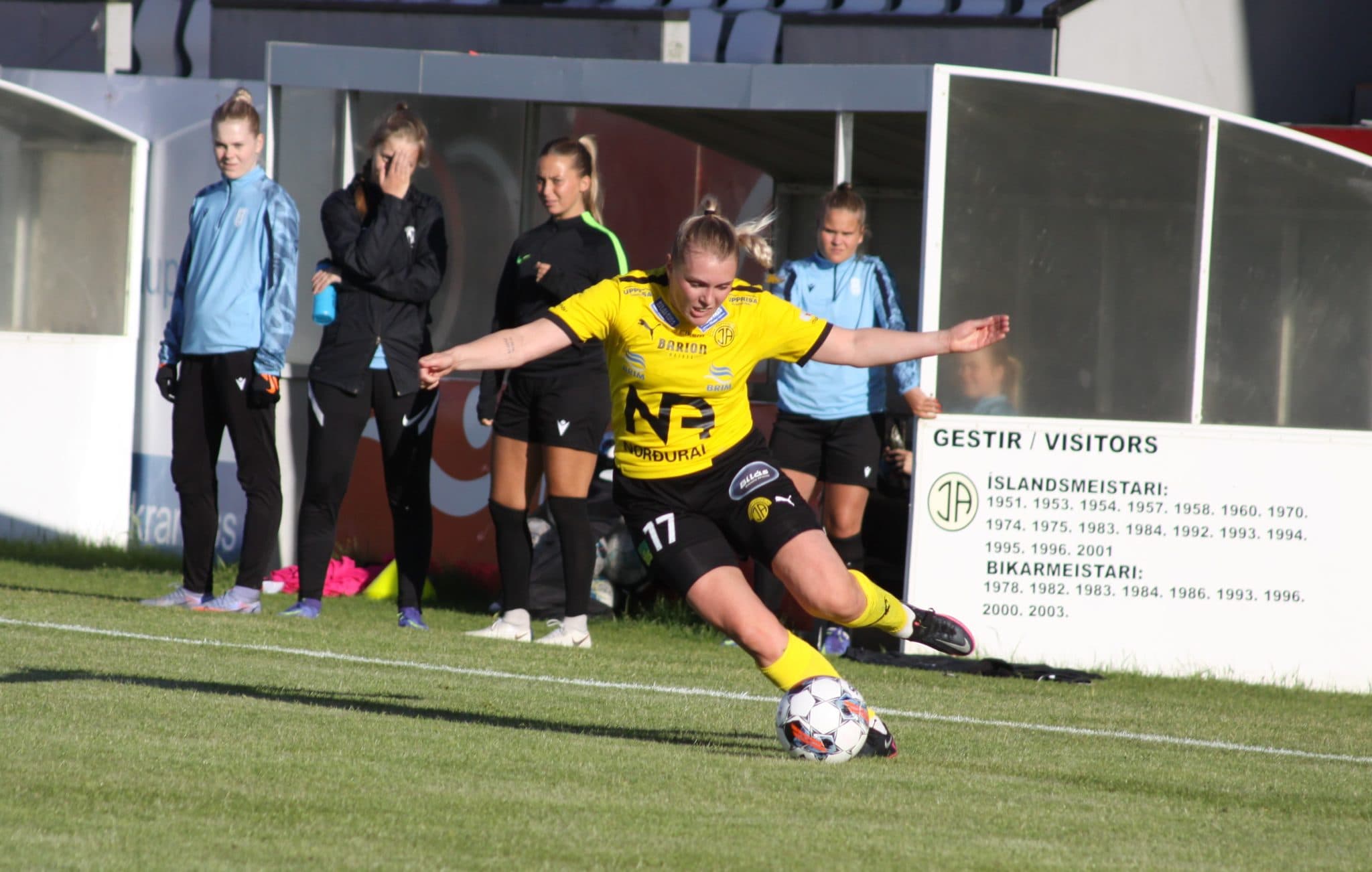 "saveContent": "Völsungur og ÍA mættust í gær í úrslitakeppni efri hluta 2. deildar kvenna í knattspyrnu og fór viðureignin fram á Húsavík. Fyrir leik átti Völsungur enn von um að komast upp í Lengjudeildina með sigri í leiknum en Skagakonur voru meira að spila upp á stoltið. Aðstoðarþjálfarinn Aldís Ylfa Heimisdóttir var við stjórnvölinn hjá ÍA í leiknum þar sem Magnea Guðlaugsdóttir var fjarri góðu gamni vegna leikbanns. Lítið markvert gerðist í fyrri hálfleik og staðan markalaus þegar dómari leiksins flautaði til hálfleiks.\r\n\r\nÞað var síðan Unnur Ýr Haraldsdóttir sem kom ÍA yfir á 73. mínútu með sínu tíunda marki í sumar og fjórum mínútum fyrir leikslok skoraði Samira Suleman annað mark Skagakvenna. Góður sigur ÍA norðan heiða og þar með slökktu þær allar vonir Völsungs um að komast upp. Nú er ljóst að Fram og Grótta hafa tryggt sér sæti í Lengjudeildinni á næsta tímabili á kostnað Hauka og Fjölnis sem eru fallin úr Lengjudeildinni.\r\n\r\nEin umferð er eftir af úrslitakeppninni og fer hún fram næsta laugardag. Þar mætir ÍA liði KH á Akranesvelli og hefjast leikar klukkan 15.",