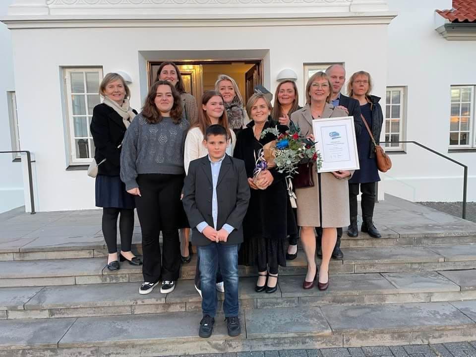 Íslensku menntaverðlaunin voru afhent við hátíðlega athöfn á Bessastöðum í gær, 2. nóvember. Meðal þeirra verkefna sem tilnefnd höfðu verið til verðlauna í flokknum framúrskarandi þróunarverkefni var átthagafræðikennsla í Grunnskóla Snæfellsbæjar. Skemmst er frá því að segja að skólinn hlaut Íslensku menntaverðlaunin 2022 í þeim flokki. Fern önnur menntaverðlaun voru afhent við sama tækifæri og verða þau kunngjörð í kvöld á þætti í Ríkissjónvarpinu. Fulltrúar Grunnskóla Snæfellsbæjar sem tóku við verðlaunum úr hendi Guðna Th. Jóhannessonar forseta Íslands voru þau Hilmar Már Arason skólastjóri og Vilborg Lilja Stefánsdóttir ásamt átthagafræðiteymi skólans og þremur nemendum sem voru fulltrúar skólans.