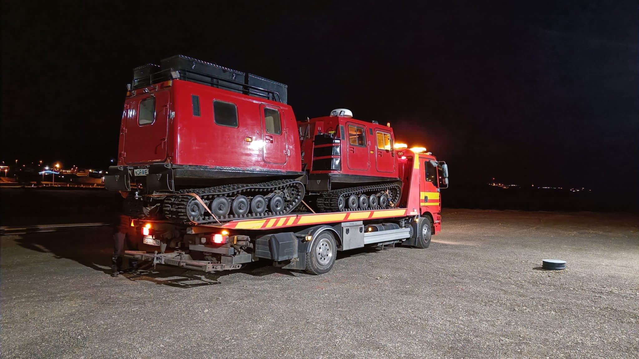 „Þessi bíll er í raun einstakur,“ segir Elín Matthildur. „Hann var gerður upp í þeim tilgangi að vera notaður í leiðangur Ragnars Axelssonar ljósmyndara til Síberíu, en sú ferð átti að vera hluti af Norðurslóðaverkefninu. Bíllinn er innréttaður þannig að fjögur sæti eru í fremri vagninum og tveir bekkir í þeim aftari, sem einnig er hægt að nota undir börur, jafnvel fjórar ef við setjum kojurnar upp. Bíll af þessari gerð þolir afar mikið frost og í rauninni er hægt að fara út á honum í öllum veðrum. Hægt er að aka honum yfir jökla og mýrar og raunar einnig sigla honum á vatni. Eftir að Úkraínustríðið braust út varð ekkert af ferð Ragnars til Síberíu. Ólafur Ólafsson er eigandi bílsins og vinur Raxa, en Ólafur er eins og kunnugt er uppalinn í Borgarnesi og var auk þess sjálfur félagi í Björgunarsveitinni Brák á sínum tíma. Ólafur ákvað að leggja sveitinni til bílinn til frjálsra afnota og erum við honum afar þakklát fyrir,“ segir Elín Matthildur.