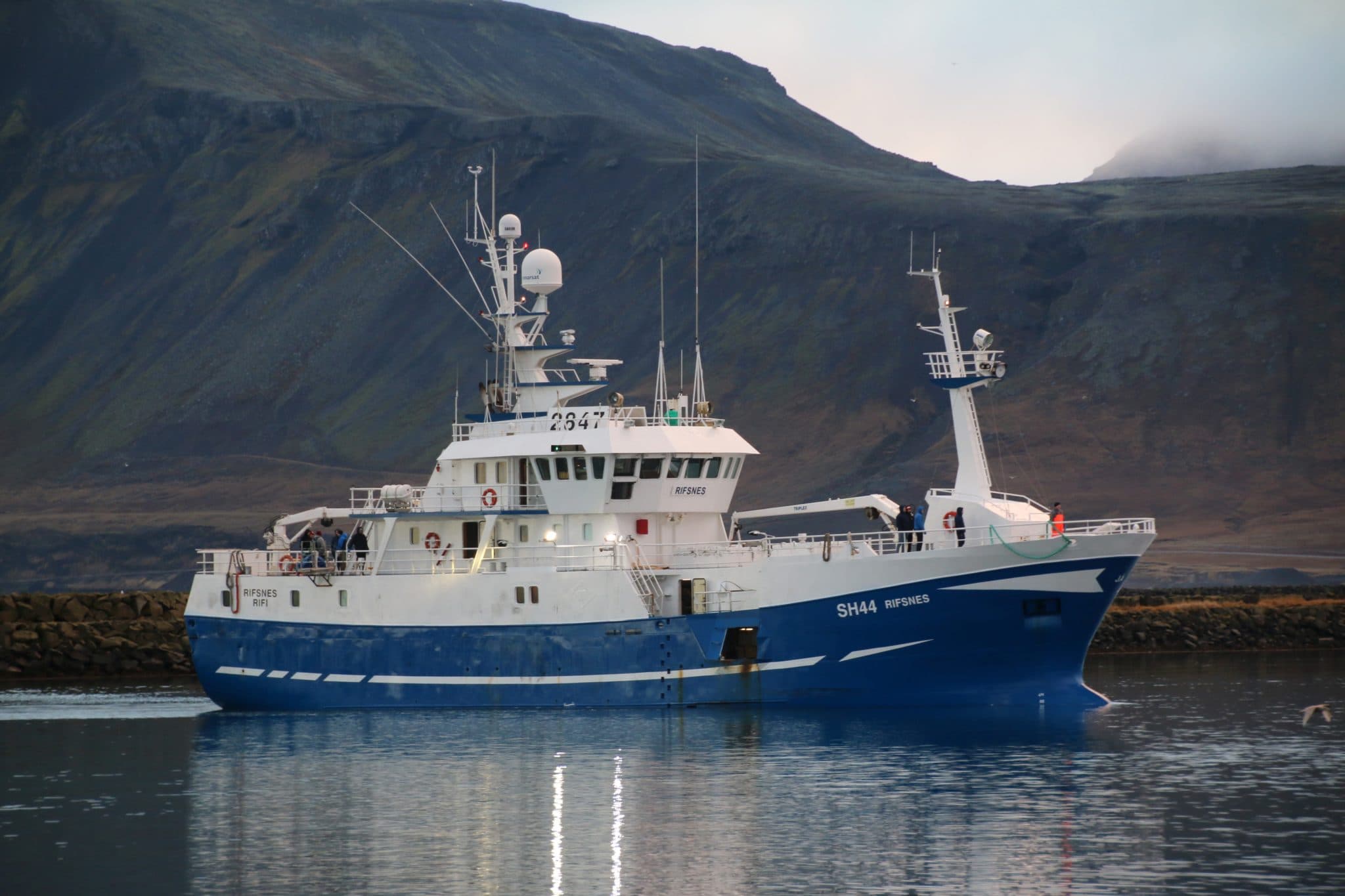 Rifsnes SH kemur til hafnar í Rifi með 135 tonna afla og ber skipið aflann mjög vel eins og sjá má. Ljósmyndir/af