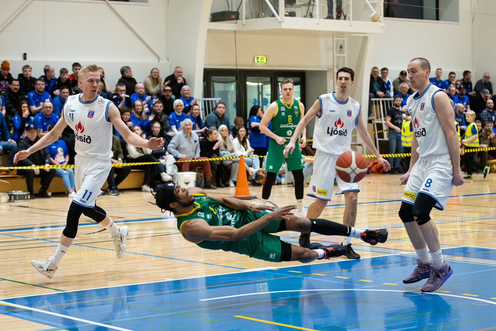 Álftanes og Skallagrímur áttust við á Álftanesi í gærkvöldi og með sigri gátu heimamenn tryggt sér sæti í efstu deild í fyrsta skipti í sögu félagsins. Heimamenn virtust yfirspenntir og smá taugaveiklaðir í byrjun leiks því Skallagrímur komst í 4:9 eftir tæpan tveggja mínútna leik. Álftanes náði þó fljótlega áttum og staðan 15:15 um miðbik fyrsta leikhluta. Heimamenn settu svo niður síðustu sjö stigin í leikhlutanum og komu sér í fína stöðu, staðan 25:17 fyrir Álftanesi. Heimamenn héldu áfram að herja á Skallana og voru komnir með 15 stiga forskot eftir rúmar fimm mínútur í öðrum leikhluta. Þeir voru alls ekki hættir og þegar flautað var til hálfleiks var staðan orðin ansi erfið fyrir gestina, hálfleikstölur 57:35 fyrir Álftnesingum.