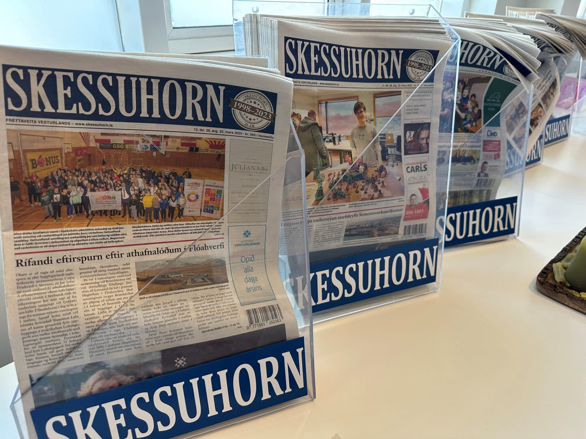 Skessuhorn kom að venju út í morgun, fullt af áhugaverðu efni. Næsta tölublað kemur út degi fyrr en venjulega, þ.e. á þriðjudaginn í dymbilviku. Það er gert til að blaðið nái til allra áskrifenda í tæka tíð fyrir páska. Skilafrestur auglýsinga er í síðasta lagi á hádegi á mánudaginn, helst þó fyrir helgi. Ábendingar um fréttir og aðsendar greinar þurfa að berast í síðasta lagi um helgina á skessuhorn@skessuhorn.is