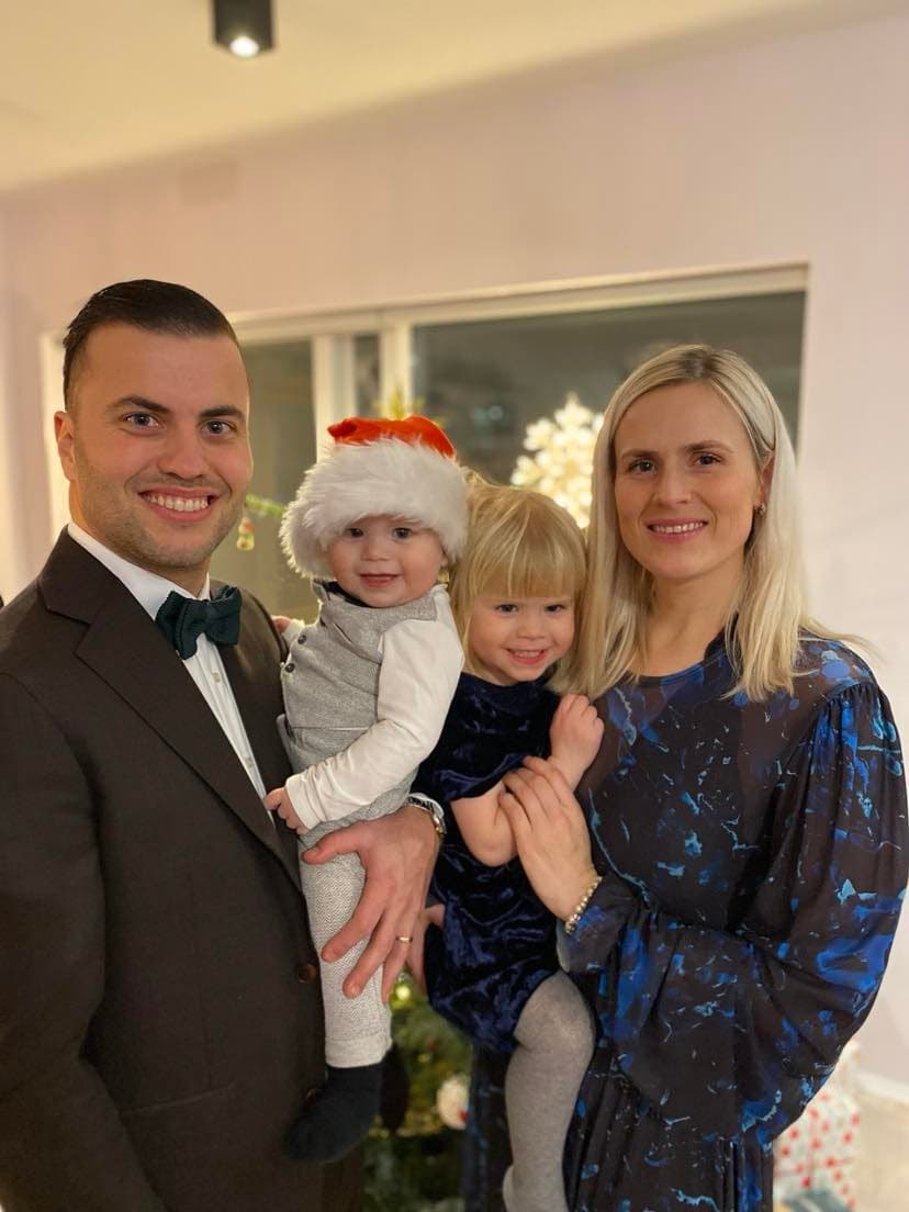 Aaron Palomares og Una Sóley Pálsdóttir með börnin sín tvö.