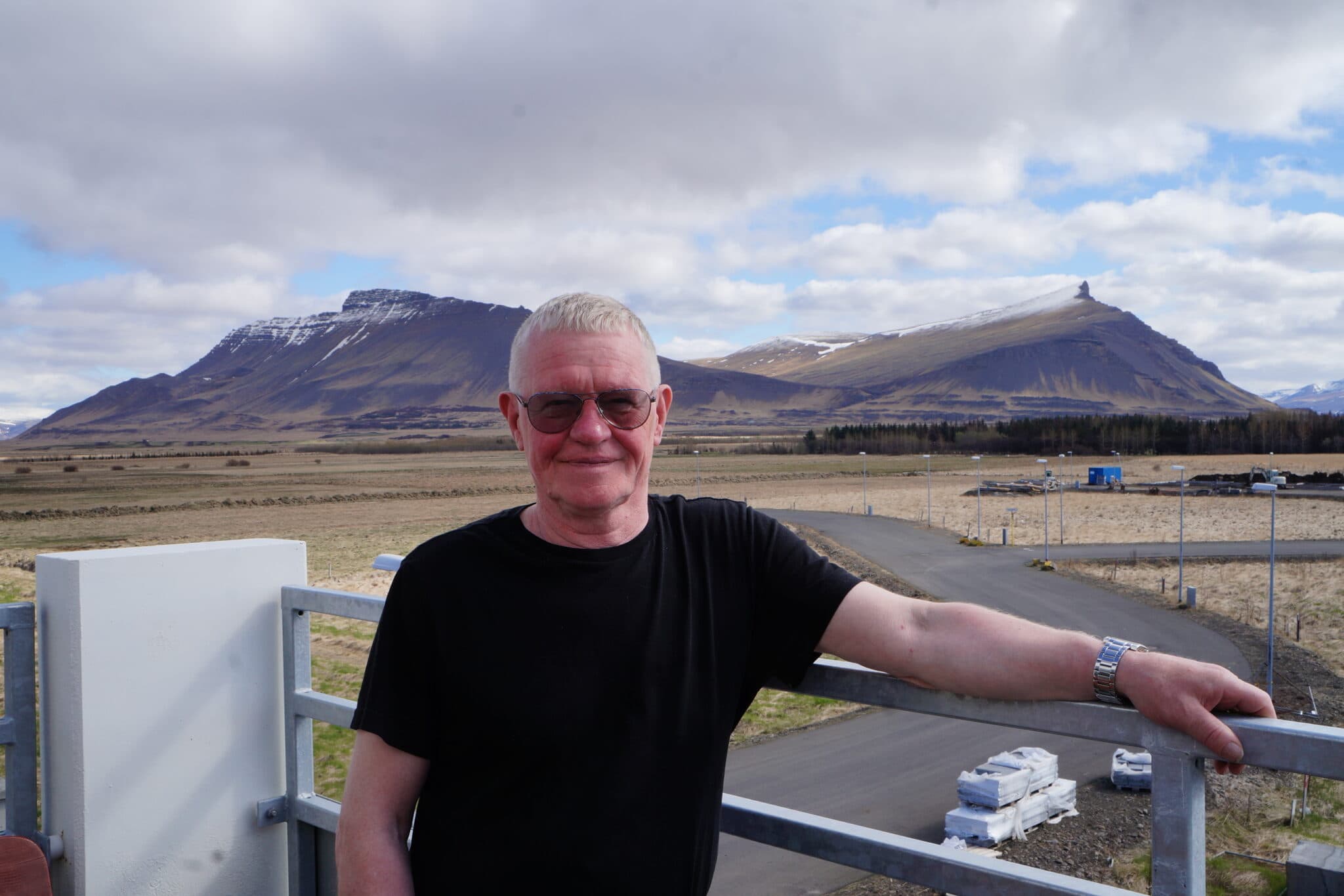Haraldur Jónsson á svölunum heima hjá sér í nýju íbúðinni við Asparskóga. Ljósm. hb