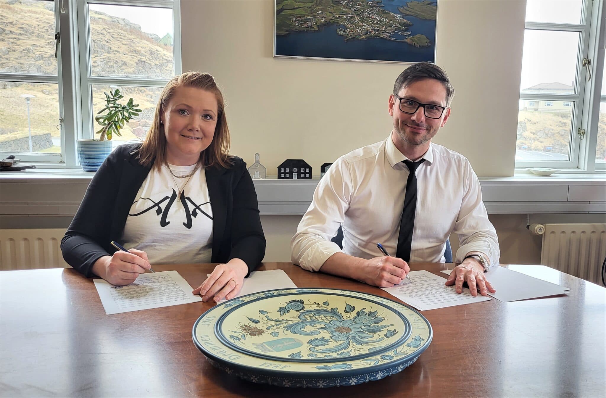 Sigurbjörg Ottesen og Jakob Björgvin S. Jakobsson rita undir samninga. Ljósm. Stykkishólmur