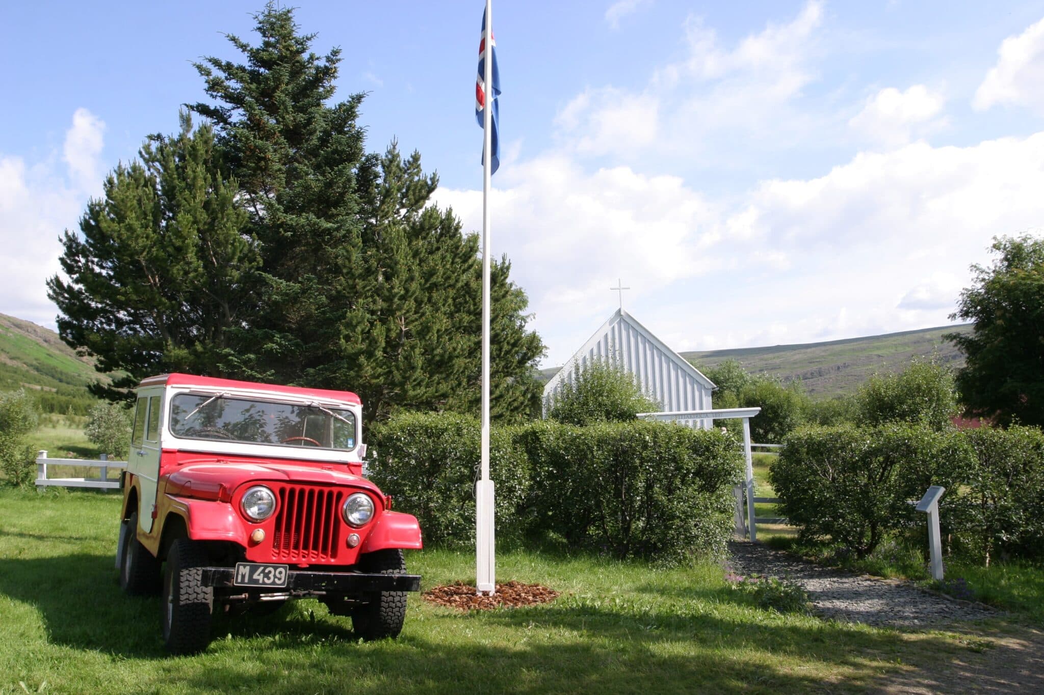 Við Fitjakirkju í Skorradal. Ljósm. úr safni/mm