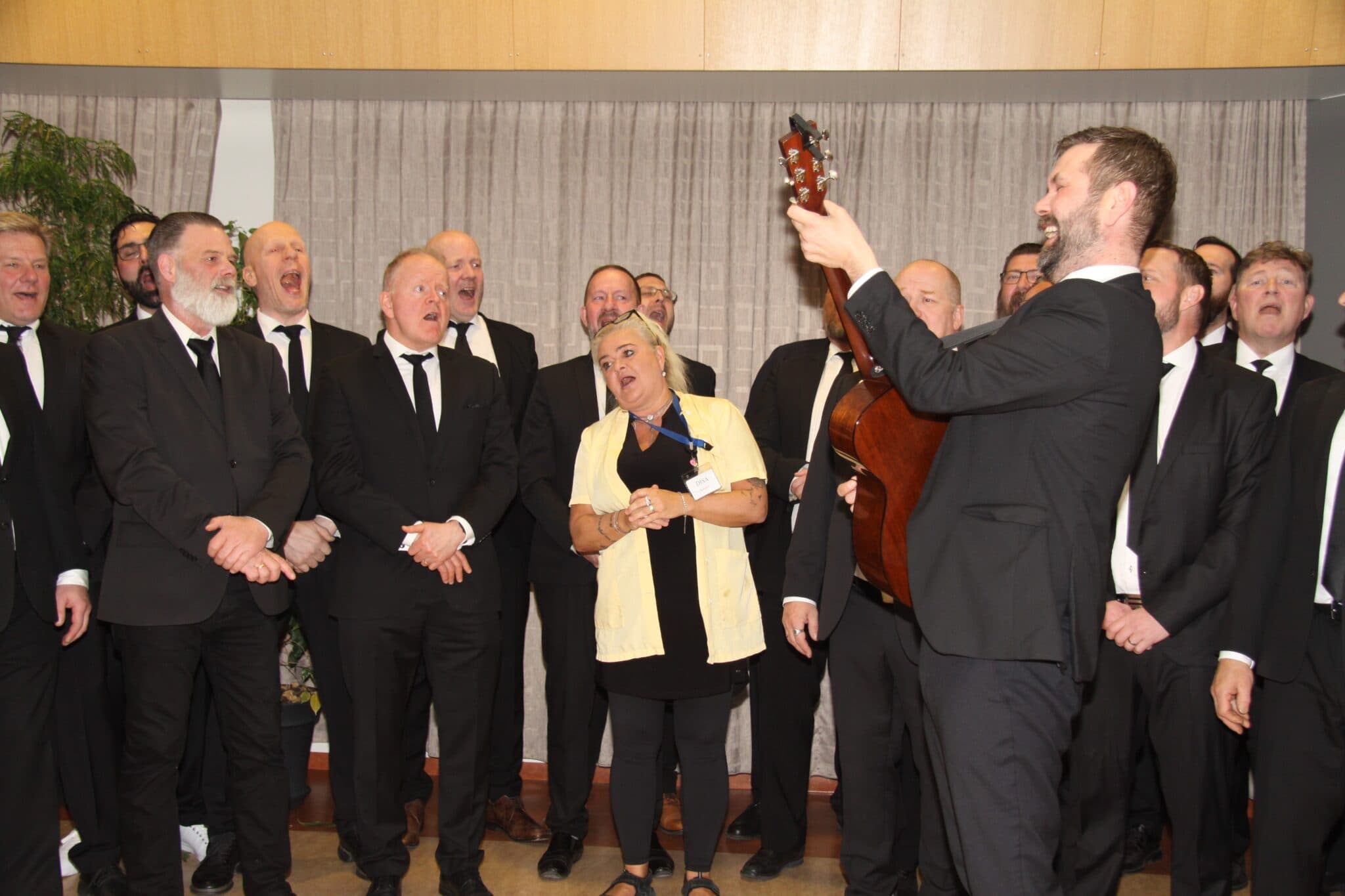 Það var óvænt og óundirbúin heimsókn sem íbúar á hjúkrunar- og dvalarheimilinu Höfða á Akranesi fengu í gærkvöldi. Karlakórinn Fjallabræður var þá í óvissuferð á svæðinu og ákváðu kórfélagar að koma við á Höfða og bjóða upp á tónleika eftir kvöldmat á heimilinu. Meðan beðið var komu kórsins tóku þær Ásta Marý og Berglind starfskonur á Höfða sig til og sungu fyrir viðstadda við undirleik Sigurðar Guðmundssonar. Kórinn tók svo lagið fyrir íbúa og starfsfólk og söng í um klukkutíma undir stjórn Halldórs Gunnars Pálssonar. Eins og kunnugt er er Halldór Gunnar frá Flateyri. Hann sagði við þetta tilefni að þetta væri hans leið til að færa Skagamönnum þakkir fyrir að hafa í kjölfar snjóflóðanna á Flateyri 1995, tekið á móti hópi barna frá Flateyri, og þar á meðal honum sjálfum, og leyft þeim að dvelja á Akranesi í tvær vikur sumarið eftir flóðin.