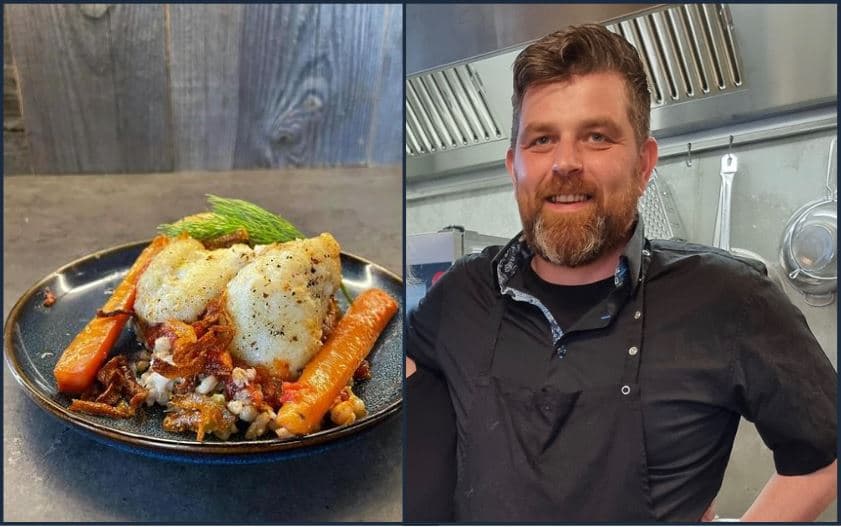Steinbítsréttur Óskars Þórs Þórðarsonar. Samsett mynd. Skessuhorn.