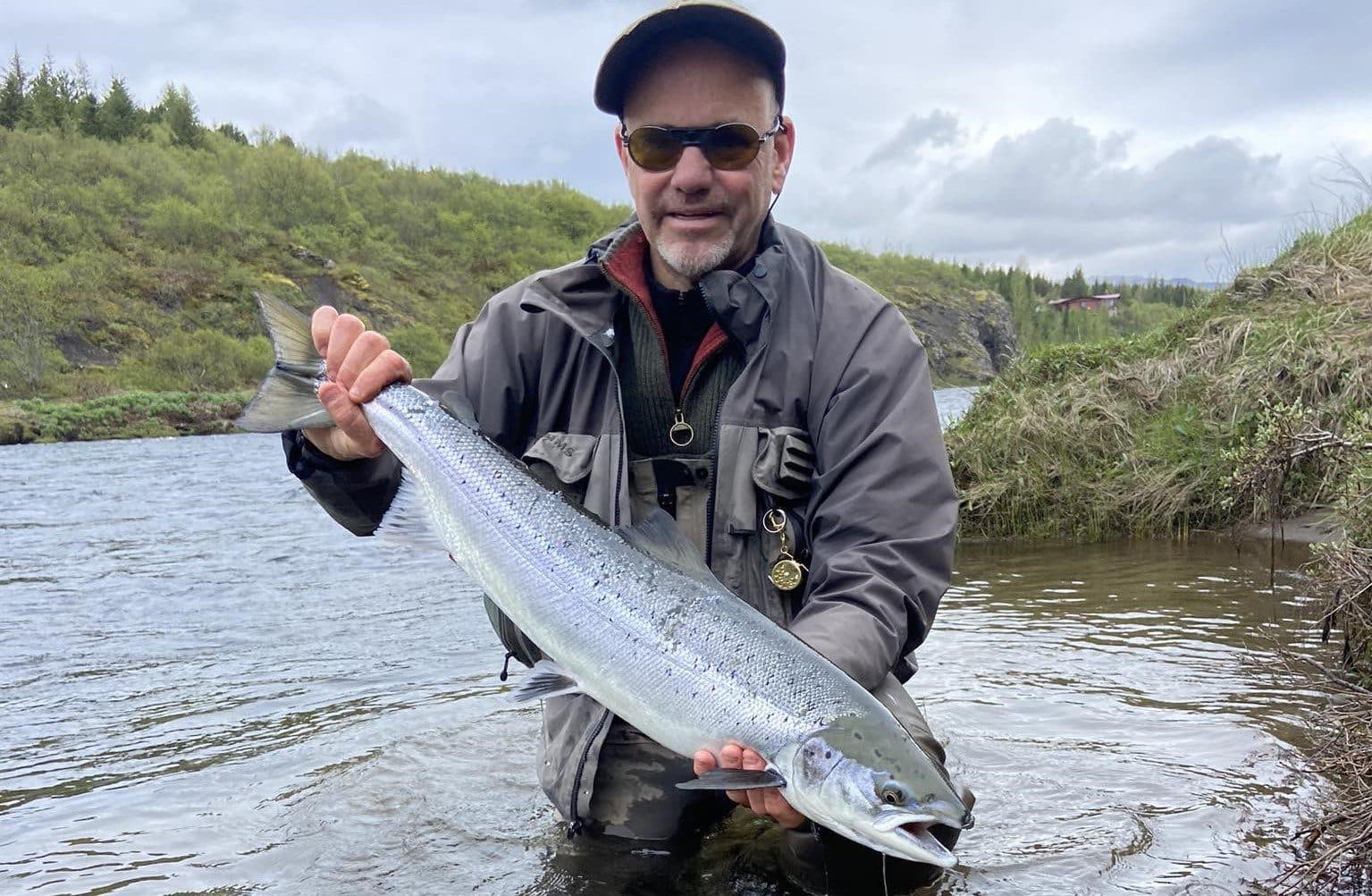 Jón Þorsteinn Jónsson með fyrsta laxinn úr Norðurá þetta árið. Ljósm. Nuno.