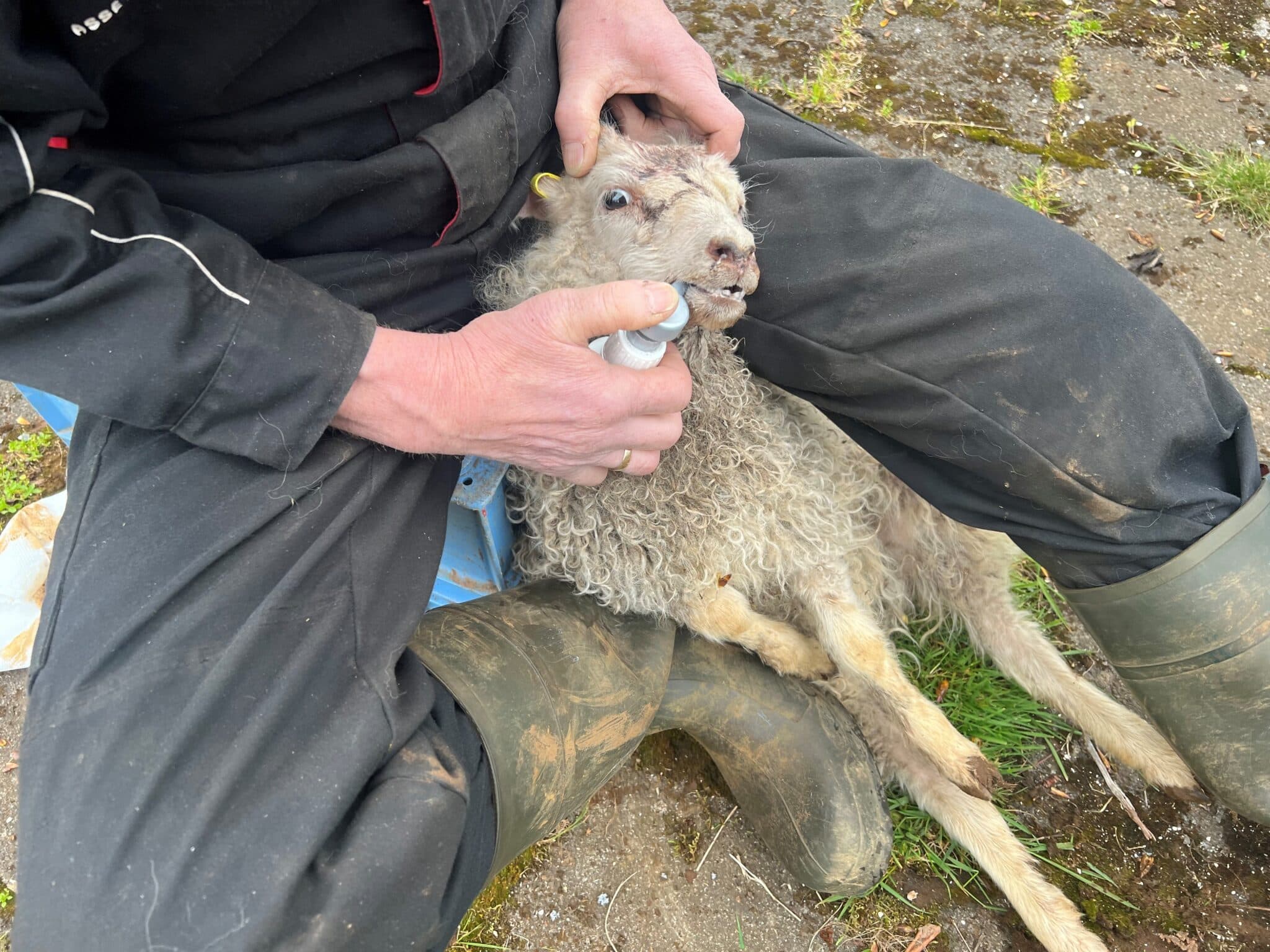 05.06.2023 11:28Lambið er m.a. sært á hálsi og ólíklegt að það lifi. Ólafur bóndi reynir þó að koma næringu í það. Ljósm. sþHundur gengur í skrokk á lambi – lausaganga hunda bönnuð við AkrafjallÞessi grein er aðeins aðgengileg áskrifendum Copy Link