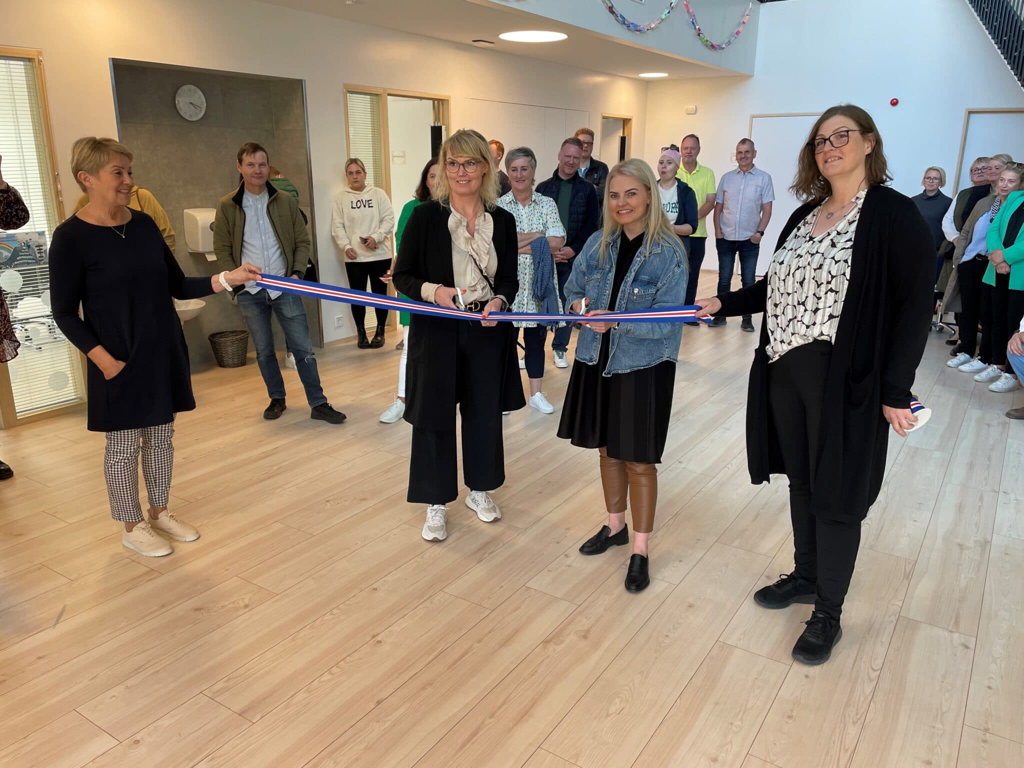 Dagný og Líf klipptu á borðann með aðstoð leikskólastjóranna. Ljósm. vaks