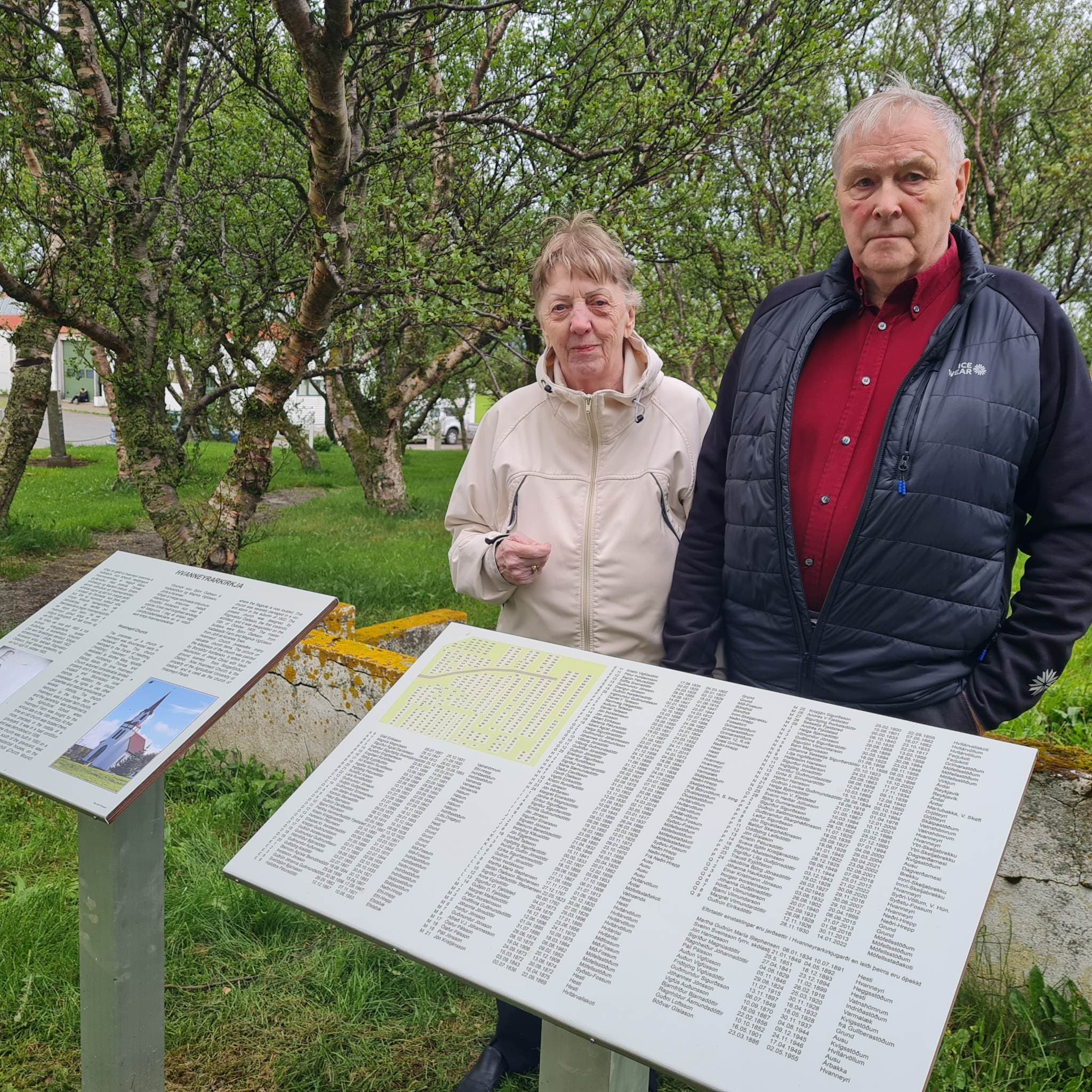 Magnús B og Steinunn gefa upplýsingaskilti í Hvanneyrarkirkjugarð