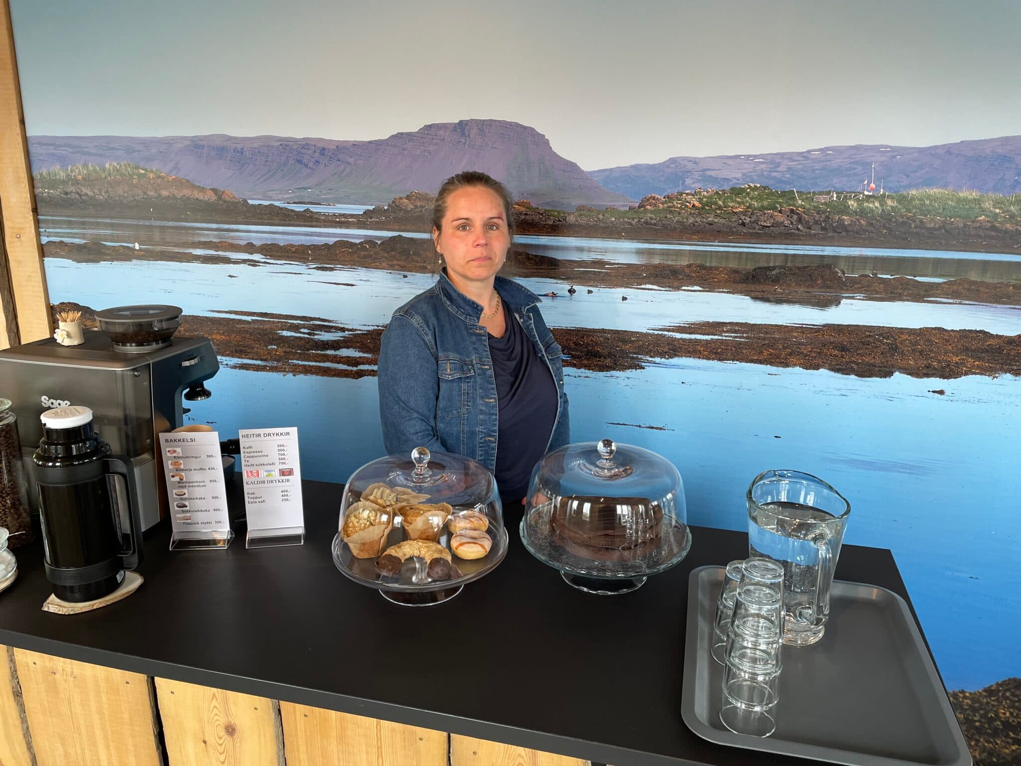 Kristbjörg Hermannsdóttir við afgreiðsluborðið. Ljósm. vaks