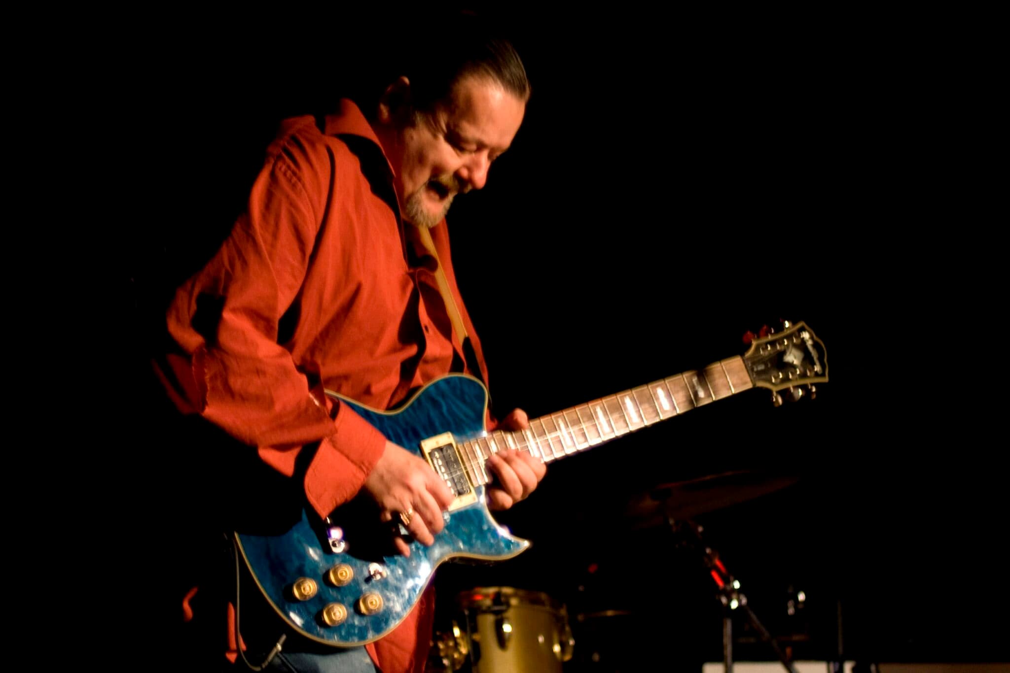 Í algleymi gítarsólósins á tónleikum í Gamla Kaupfélaginu. Ljósm. Ómar Lárusson.