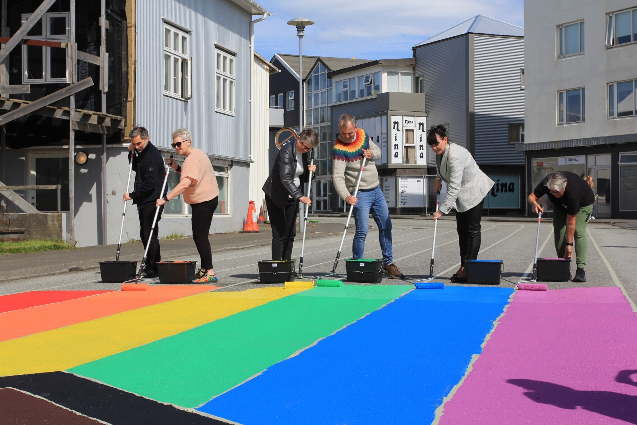 Litir fjölbreytileikans málaðir á Kirkjubrautina