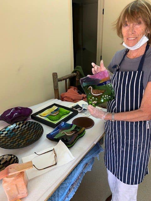 Glerlistakonan Rabby á vinnustofu sinni. Ljósm. Úr einkasafni.
