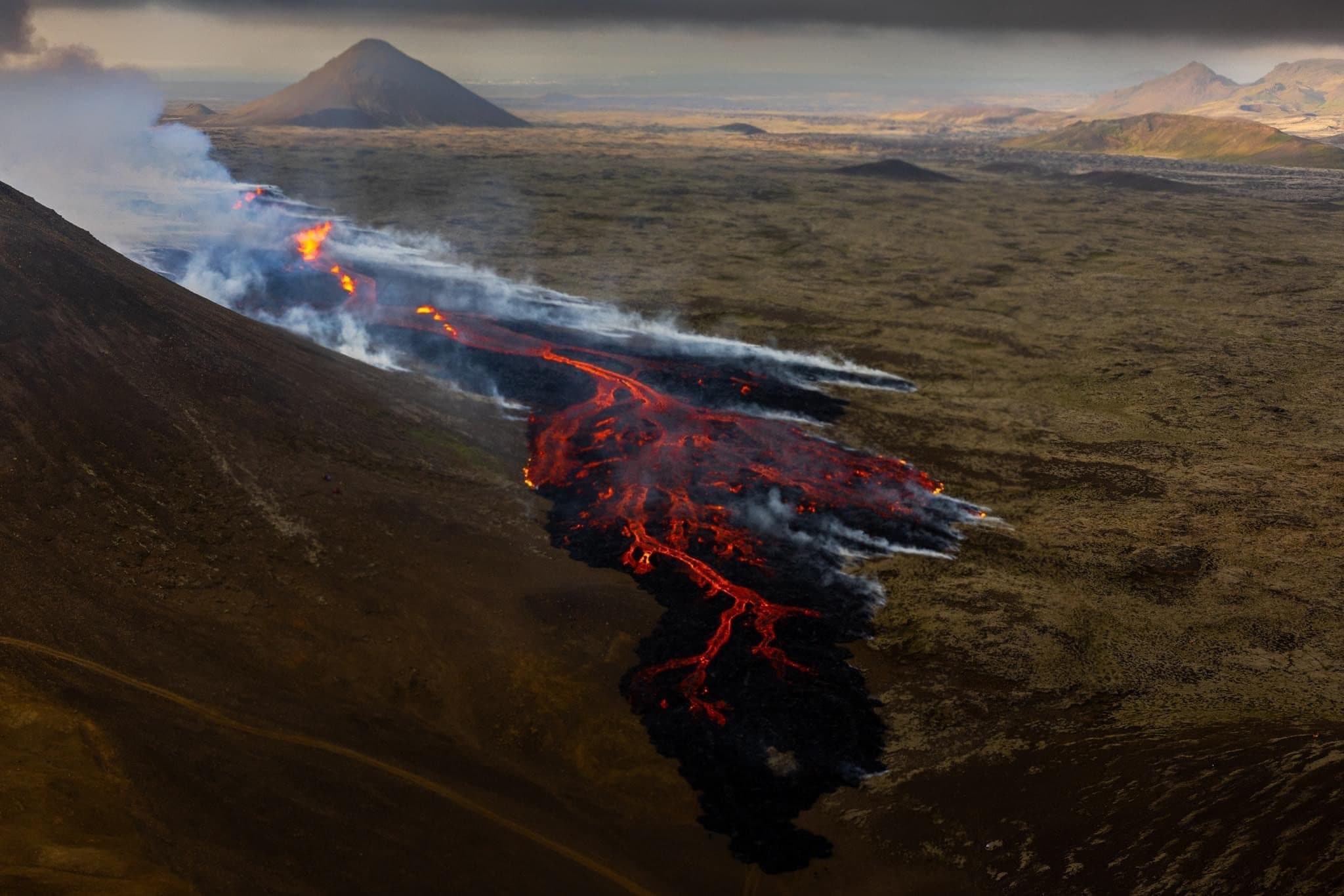 Eldgos hófst við fjallið Litla-Hrút á Reykjanesi klukkan 16:40 í gær. Það byrjaði með nokkrum hvelli og var fyrstu tímana margfalt stærra en fyrri gosin tvö á Reykjanesskaga árin 2021 og 2022. Nú gýs um þremur kílómetrum norðar en síðast. Strax í nótt dró svo úr styrk gossins og er það nú skilgreint sem aflítið hraungos og líkist fyrri gosunum tveimur.