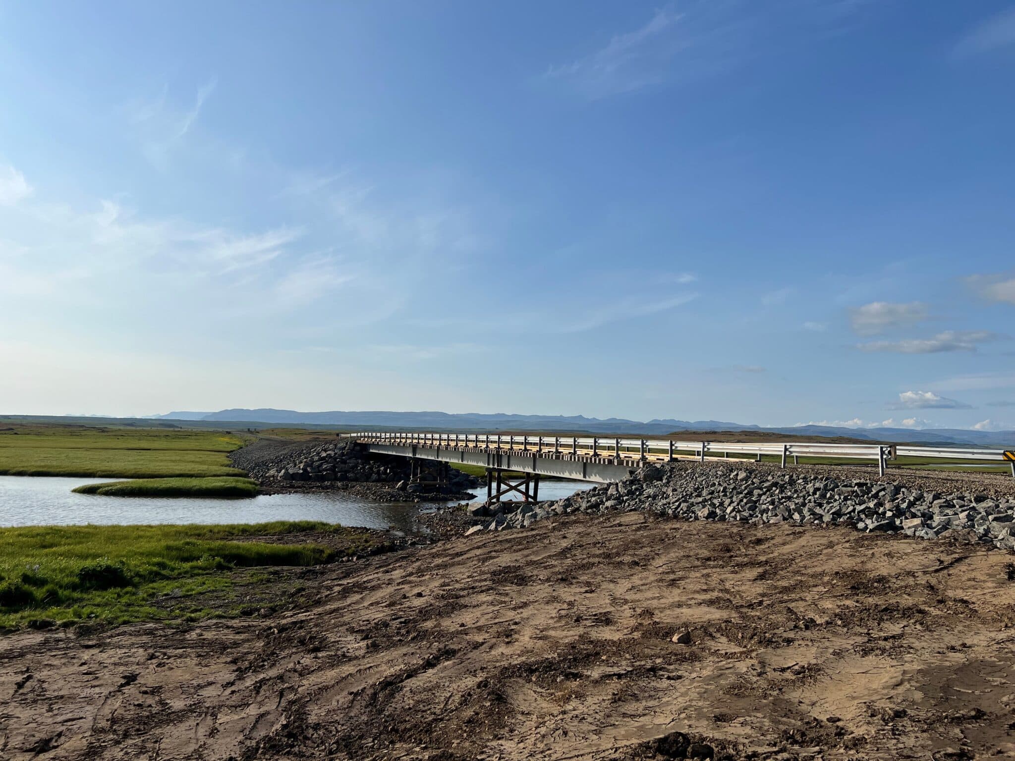 11.07.2023 10:17Nýja brúin er töluvert reisulegri en þær tvær sem voru fram að flóðunum í febrúar. Ljósm. sþNý síkisbrú hefur verið opnuðÞessi grein er aðeins aðgengileg áskrifendum Copy Link