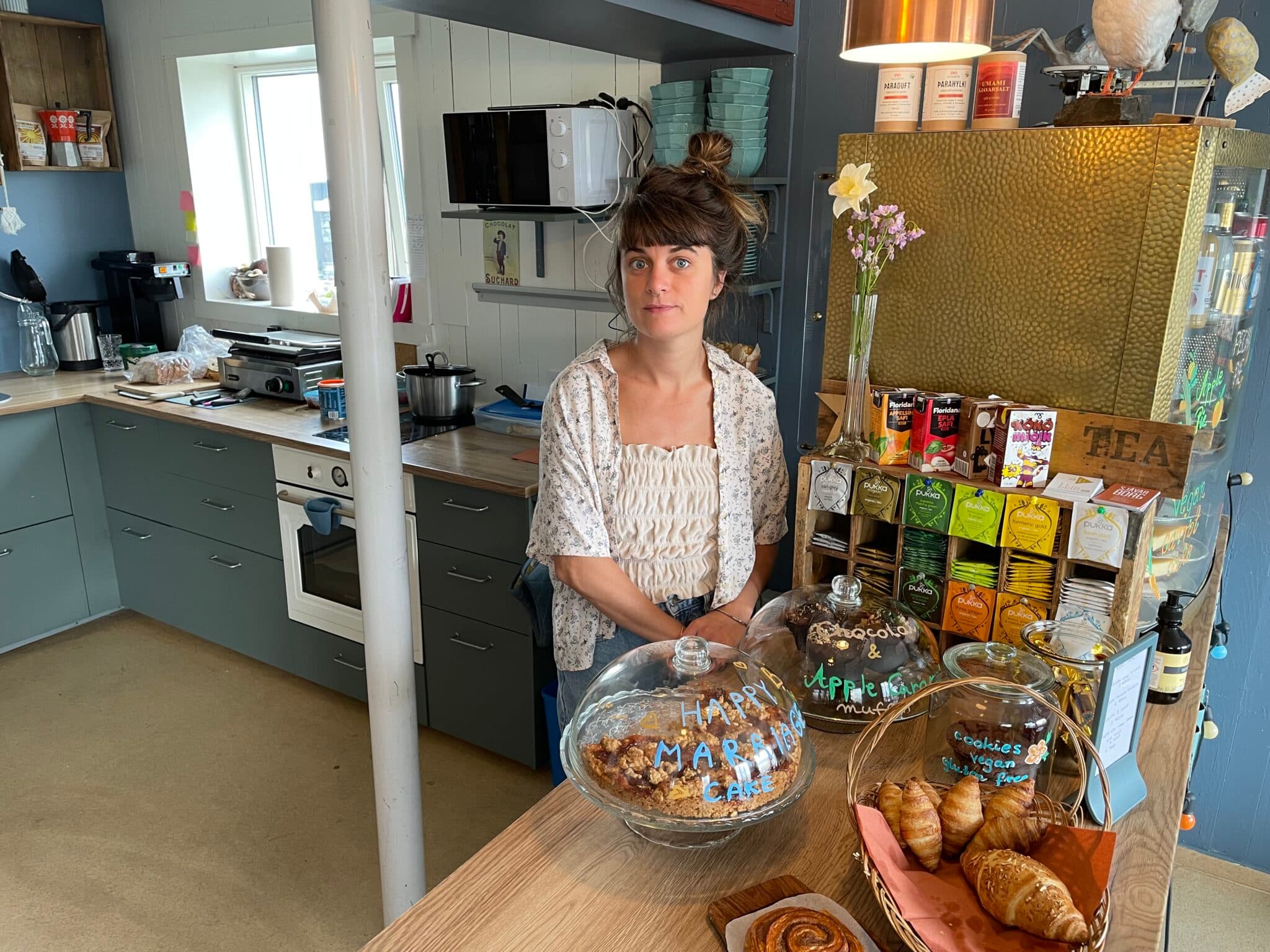 Hjónin Sigríður Jóhannesdóttir og Skarphéðinn Berg Steinarsson reka kaffi- og gistihúsið Sjávarborg í Stykkishólmi sem er staðsett á Hafnargötu 4. Blaðamaður Skessuhorns kom við í þessu fallega græna húsi á dögunum og það verður að segjast eins og er að það er góður andi í húsinu og notaleg og ljúf stemning. Að sögn þeirra hjóna hafa þau verið með þennan rekstur í tíu ár og gengið vel. „Starfsemi kaffihússins hefur verið að aukast. Til viðbótar við gott kaffi og kaffidrykki þá höfum við verið að efla okkur í framboði á mat og drykk fyrir vegan gesti. Það er sífellt að aukast og ánægjulegt að taka þátt í þeirri þróun.“