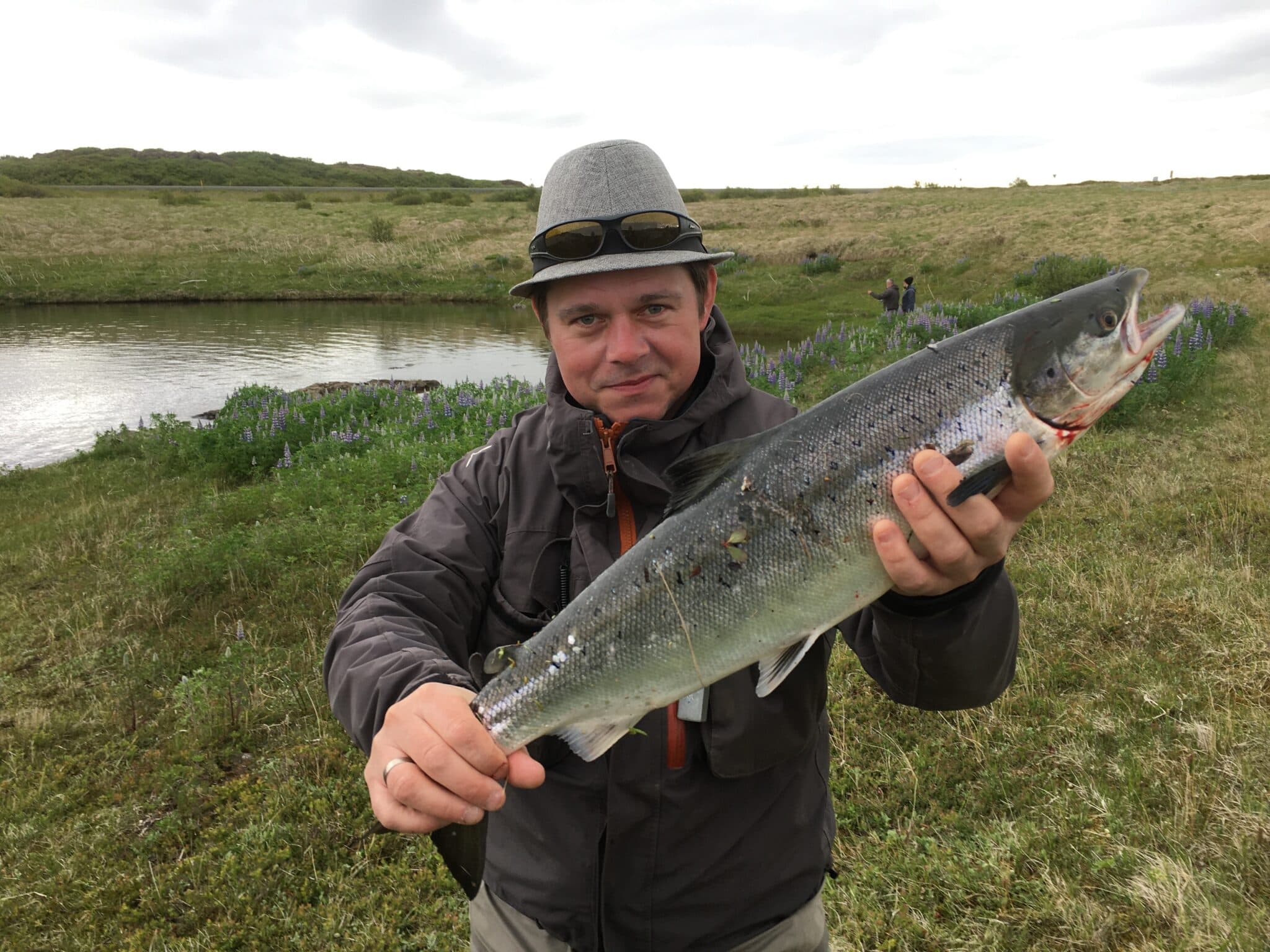 Jógvan Hansen með flottan lax úr Langá á Mýrum.