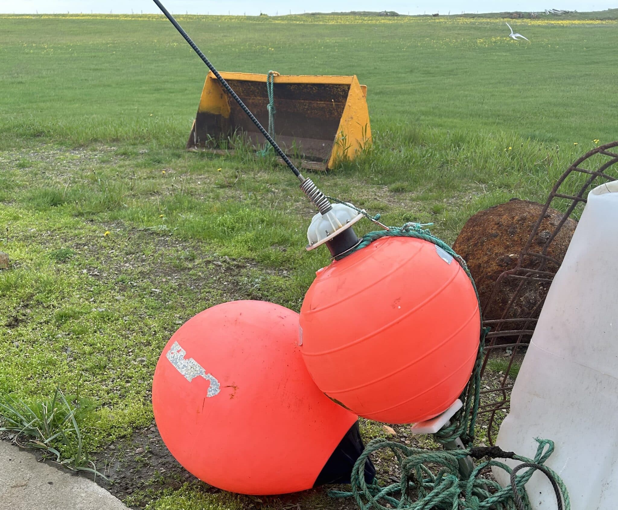 Svanur Steinarsson hlunnindabóndi í Straumfirði á Mýrum sendi Skessuhorni línu. Hann kveðst hafa verið að koma úr dúntekju þegar hann sá bólfærið á meðfylgjandi myndum fast á skeri utan við Straumfjörð. „Ég er búinn að láta Landhelgisgæsluna vita og er að vona að þetta komist til rétts eiganda þar sem það er örugglega AIS sendir á þessu, (númer er á annarri myndinni). Kannski er þetta frá einhverjum báti sem hefur verið með veiðarfæri í Faxaflóa,“ segir Svanur.
