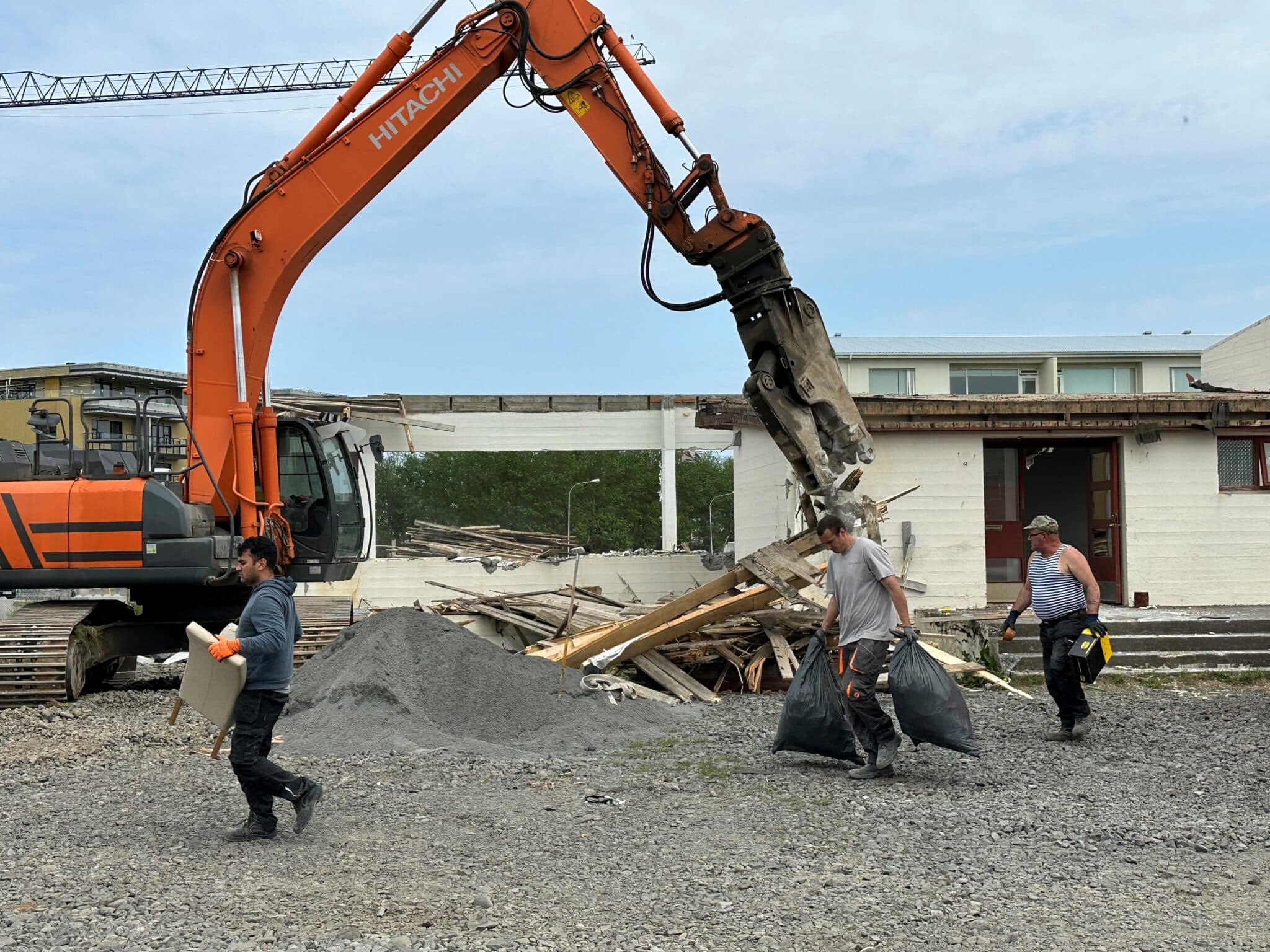 Síðustu daga hefur staðið yfir niðurrif á KFUM húsinu við Garðabraut 1 á Akranesi. Á lóðinni verður á næstu vikum byrjað að byggja stórt fjölbýlishús. Það eru starfsmenn byggingafyrirtækisins Bestla sem unnið hafa að niðurrifi gamla hússins. Lóðin er við hlið ritstjórnarskrifstofu Skessuhorns. Þannig hafa starfsmenn blaðsins fylgst með því hvernig samviskusamlega allt sem í húsinu var hefur verið flokkað eftir kúnstarinnar reglum og sett í endurvinnslugáma. Sama hvort það hafa verið innréttingar, þakplötur, timbur, stál eða aðrir húshlutar. Meðfylgjandi myndir voru teknar rétt í þessu af húsrifinu sem nú stendur yfir.