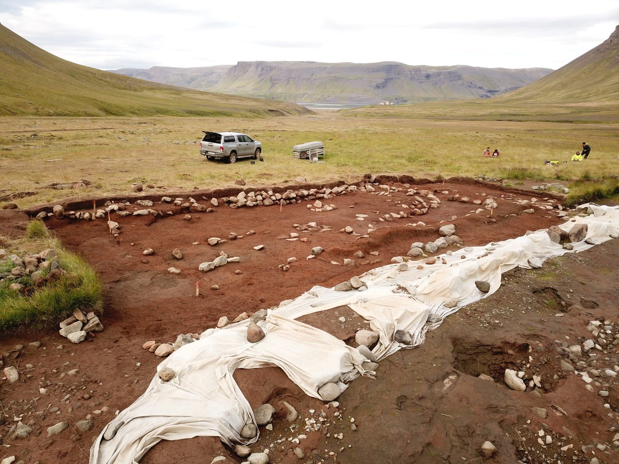 Rannsóknarsvæðið í Ólafsdal sumarið 2022. Viðbygging við skálann. Ljósmyndir: Fornleifastofnun Íslands.