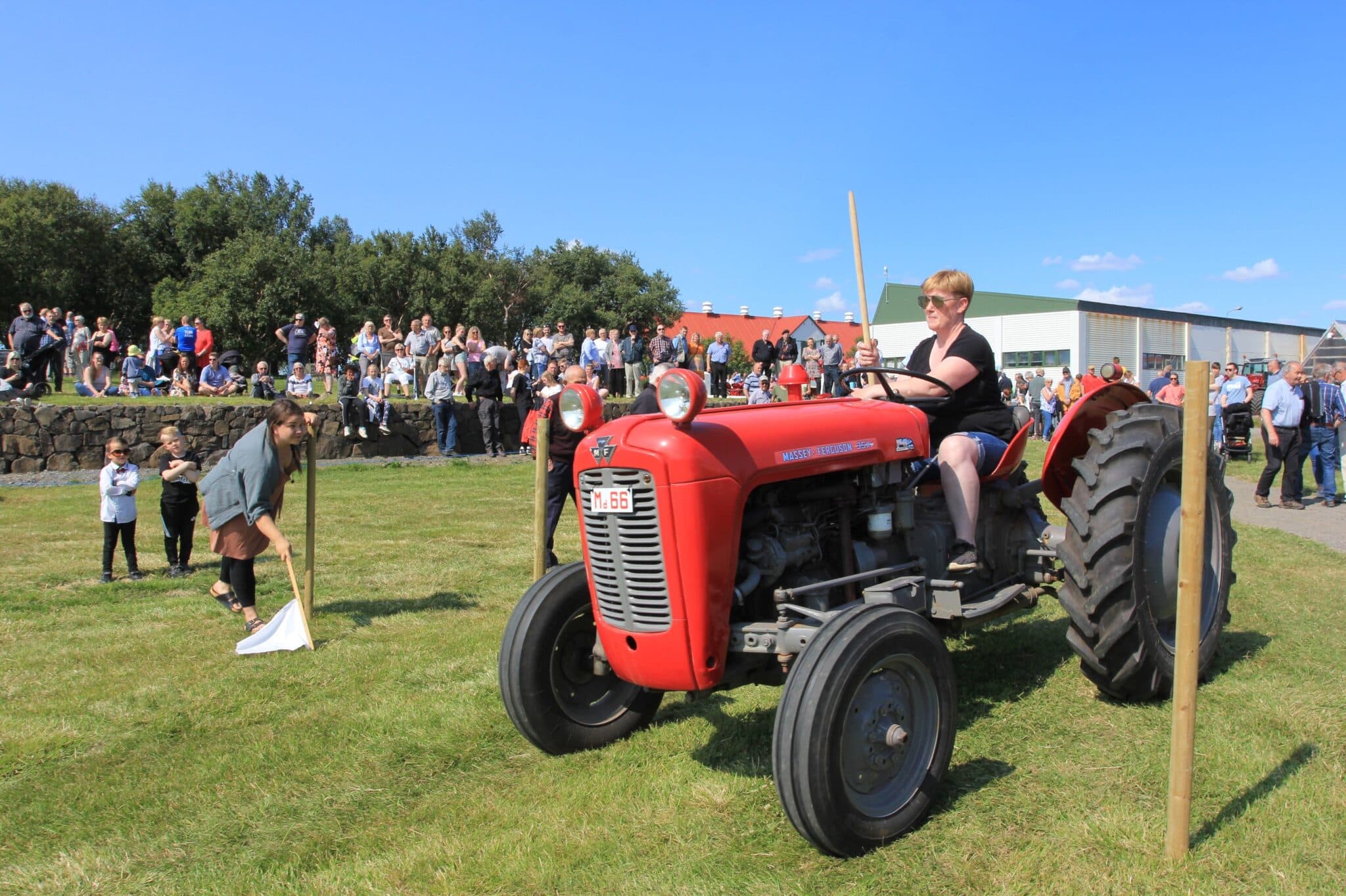 Fjóla Benediktsdóttir í rásmarkinu í dráttarvélafimi, sem Guðmundur Hallgrímsson stýrir að venju. Ljósm. mm