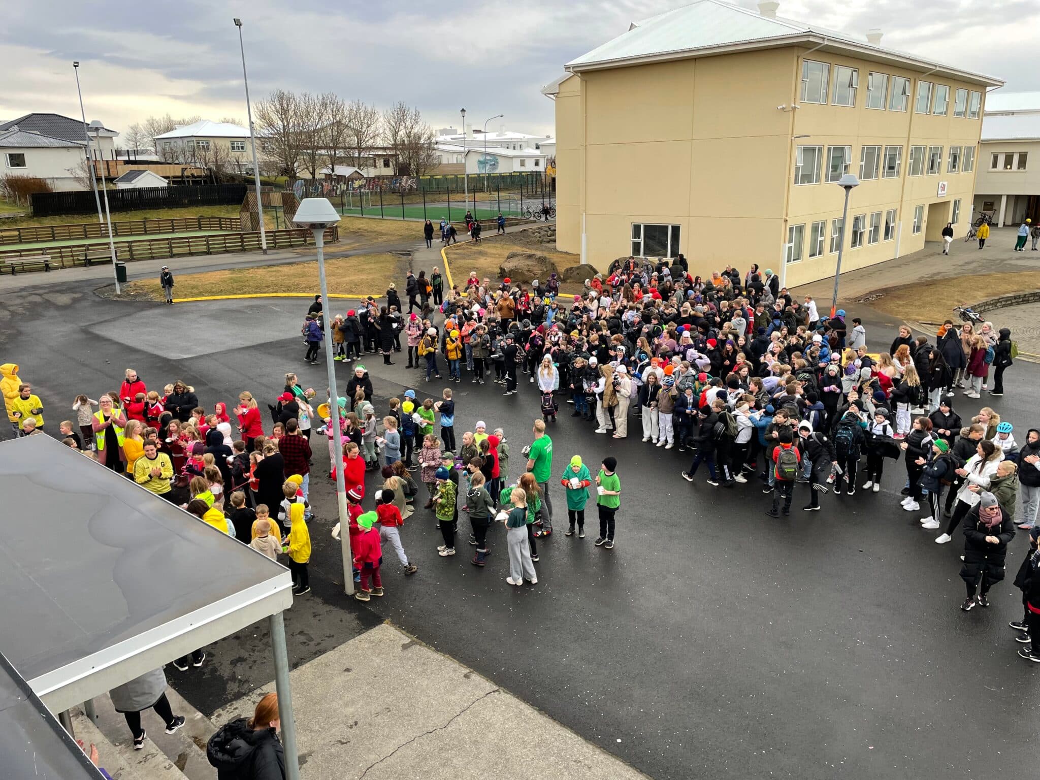 Börn og starfsfólk Brekkubæjarskóla trommuðu gegn einelti síðastliðinn vetur. Ljósm. vaks.