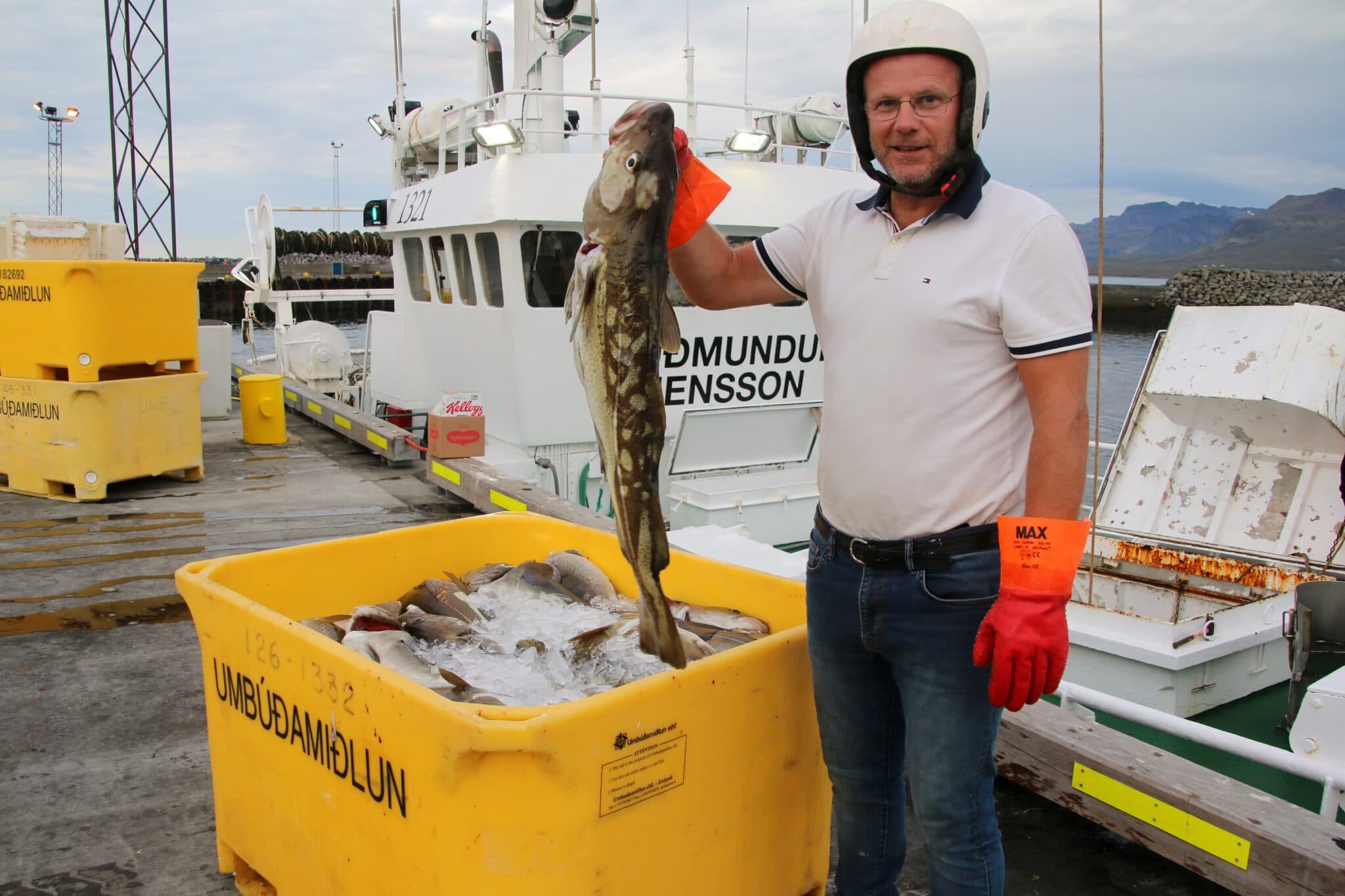 Illugi Jónasson skipstjóri á Guðmundi Jenssyni SH með vænan þorsk. Ljósm. af