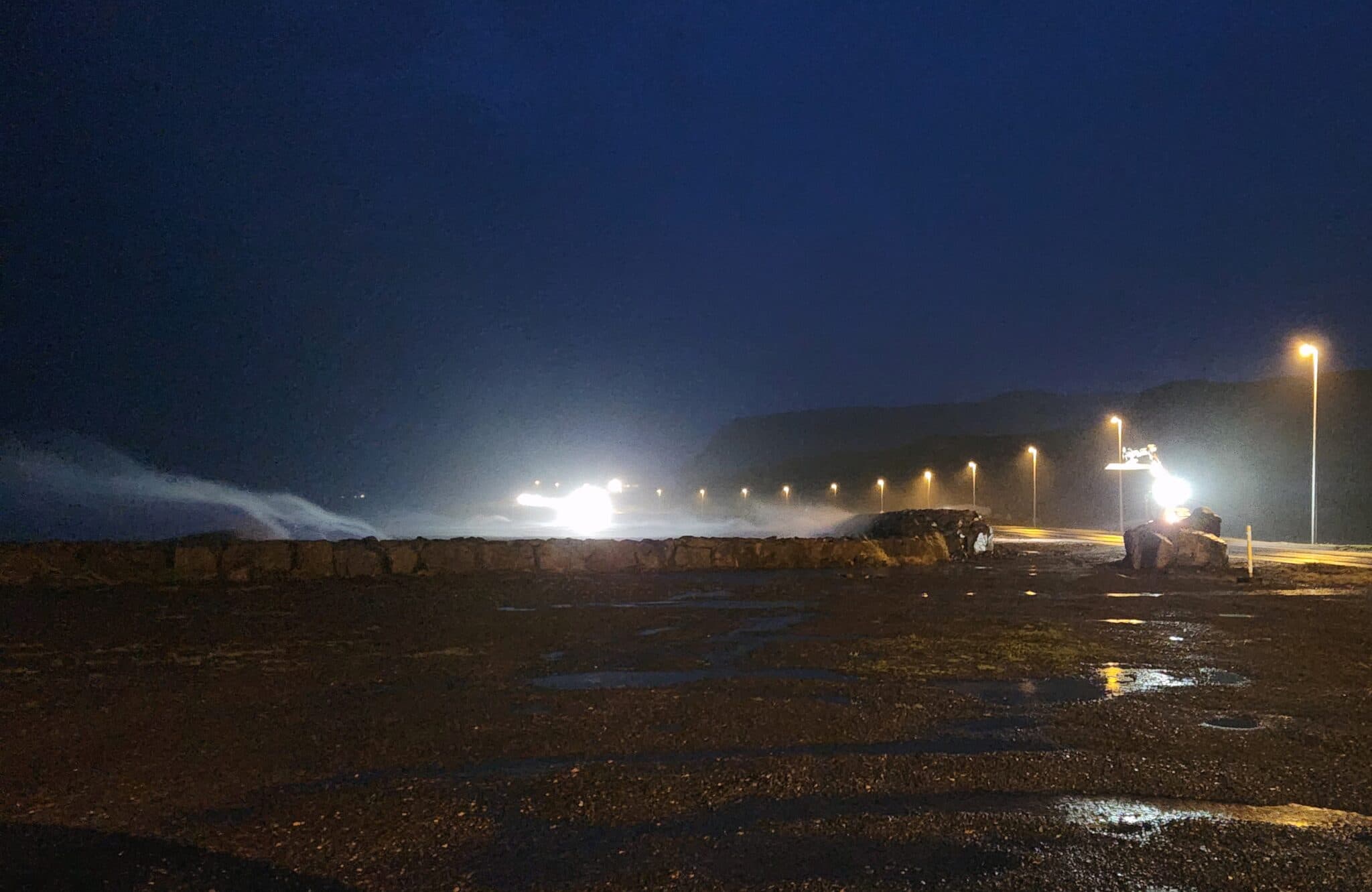 Mikið óveður gekk yfir Snæfellsnes í gærkvöldi samhliða óvenjulega hárri sjávarstöðu. Nýlega hækkaður sjóvarnargarður rétt innan við félagsheimilið Klif í Ólafsvík hélt ekki gegn ágangi sjávar eins og áætlanir höfðu gert ráð fyrir og þurfi að loka veginum tímabundið fyrir umferð á meðan hreinsa varð með gröfu grjót sem borist hafði á land. Sjórinn gekk alveg upp að húsi TS vélaleigu við Innra Klif. Þá skemmdist einn bíll sem stóð á bílaplani Hraðfrystihúss Hellissands í Rifi, þegar laust fiskikar tókst á loft og hafnaði á bílnum. Ekki er að svo stöddu vitað um frekara tjón. Nú er veðrið gengið niður í Snæfellsbæ.