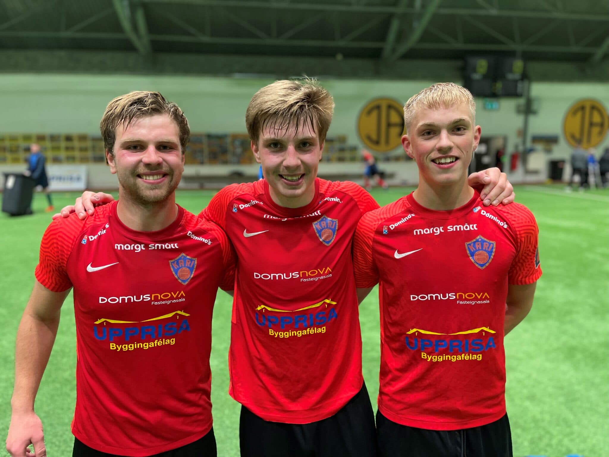 Markaskorarar Kára í leiknum á móti Reyni voru hressir eftir leik. Frá vinstri: Bræðurnir Helgi Rafn og Sigurjón Logi og Hektor Bergmann. Ljósm. vaks