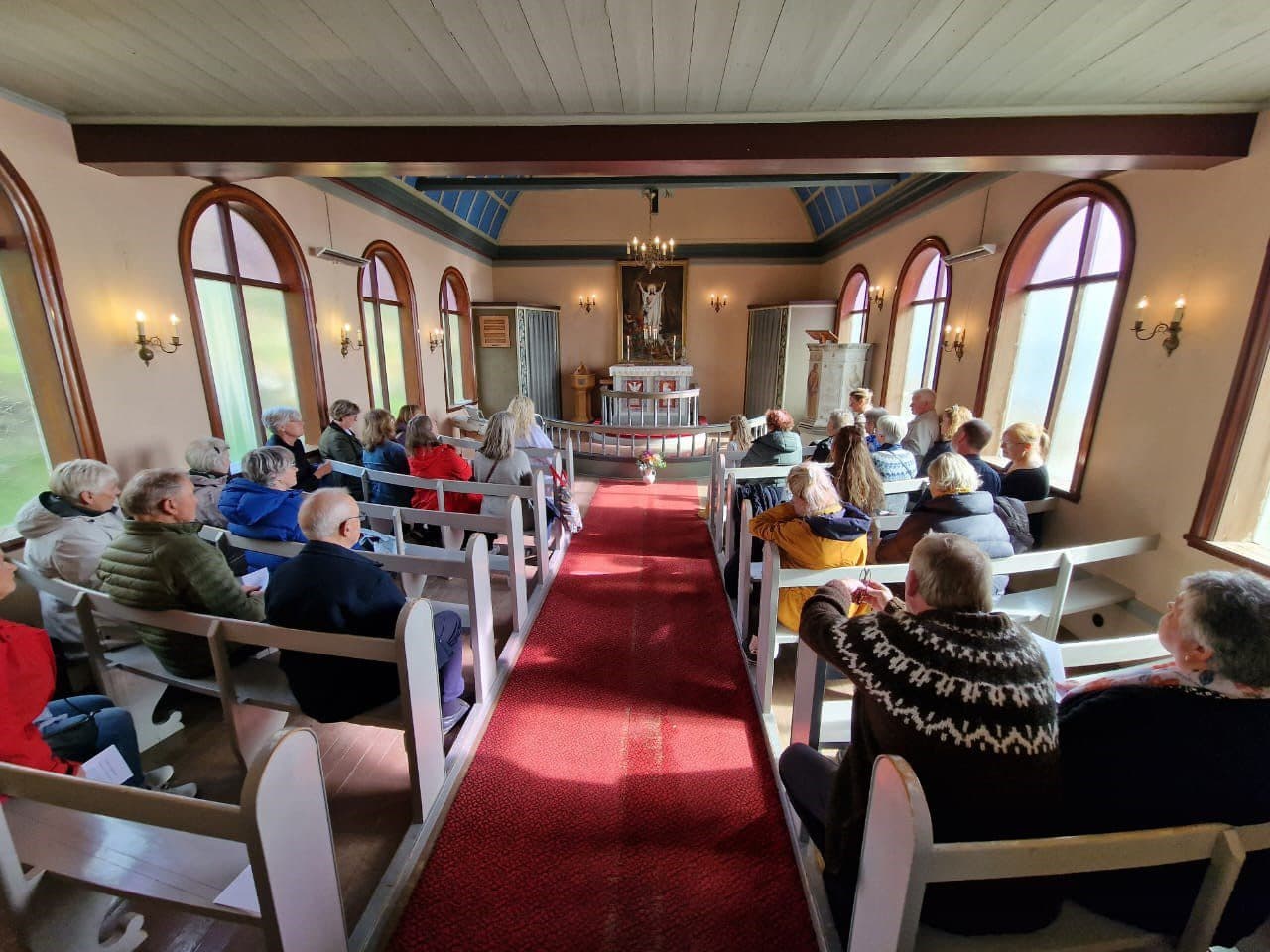 Það var ljúf og notaleg stemning þegar haldin var prjónamessa á Staðarfelli á Fellsströnd í Dölum sunnudaginn 3. september undir yfirheitinu Hugur og handverk. Sr. Guðrún Karls Helgudóttir sóknarprestur í Grafarvogskirkju þjónaði fyrir altari, frú Sigríður Hrund Pétursdóttir flutti hugleiðingu um Rætur lands og þjóðar og tónlist var í höndum Duo Barazz sem samanstendur af Láru Bryndísi Eggertsdóttur organista í Grafarvogskirkju og Dorthe Hojland saxofónleikara. Eftir messu var gestum boðið upp á skoðun í gamla húsmæðraskólanum á Staðarfelli áður en húsið verður lagt undir gagngerar endurbætur.