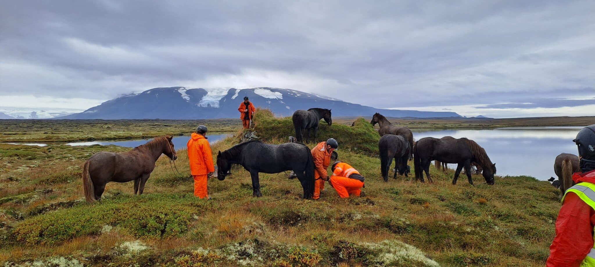 Á áningarstað leitarmanna við Réttarvatn á Arnarvatnsheiði þurfti að huga að lausri skeifu. Ljósm. Íris Þórlaug Ármannsdóttir