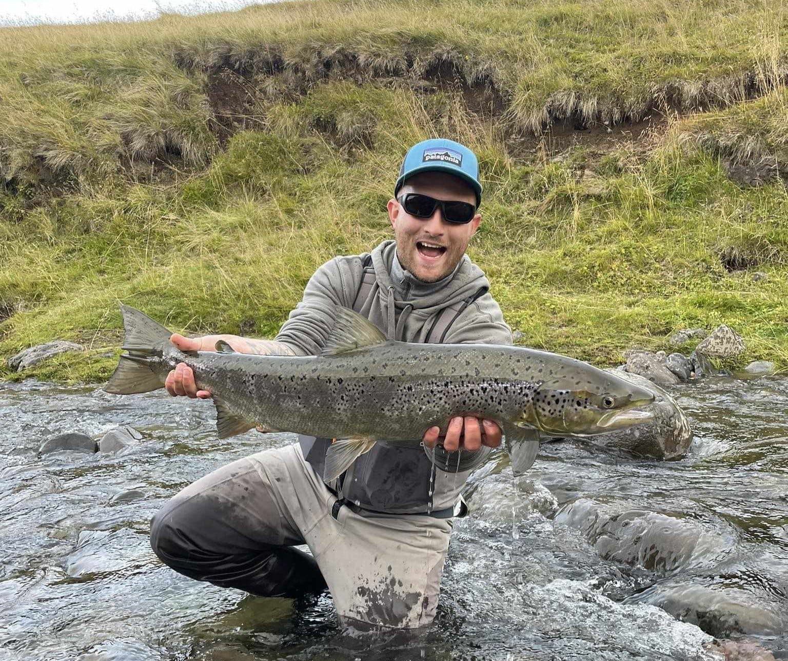 Bjarki Bóasson með flottan lax úr Miðá í Dölum. Ljósm. gb