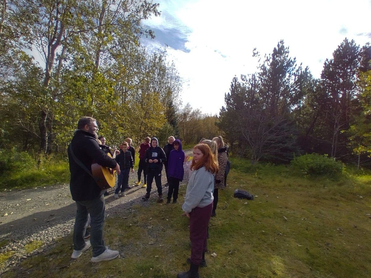 Gítarinn var tekinn upp í Álfholtsskógi. Ljósm. Heiðarskóli