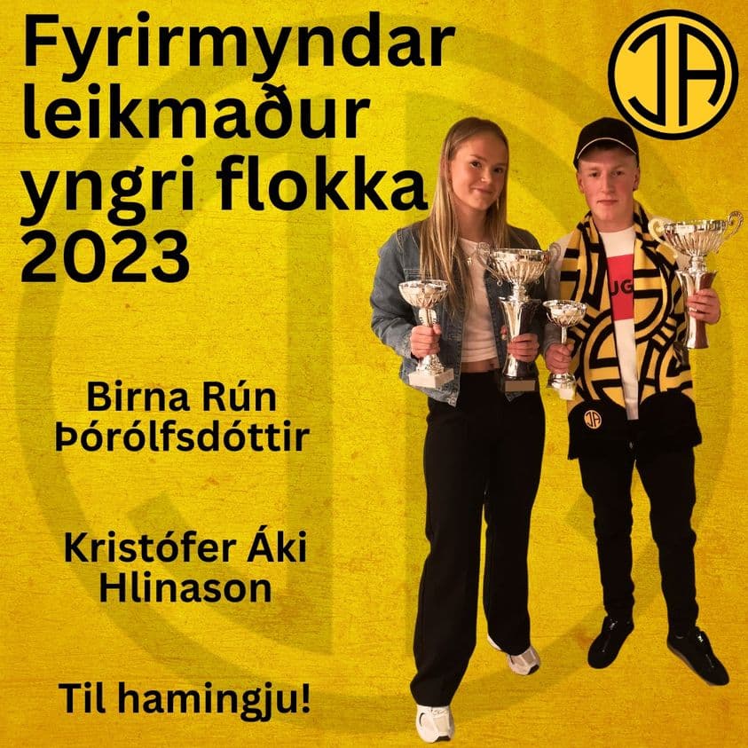 Í gær fór fram lokahóf yngri flokka hjá Knattspyrnufélagi ÍA. Fyrirmyndar leikmenn yngri flokka voru valin þau Birna Rún Þórólfsdóttir og Kristófer Áki Hlinason. Kristófer fékk Kiddabikarinn og Birna fékk TM-bikarinn.
