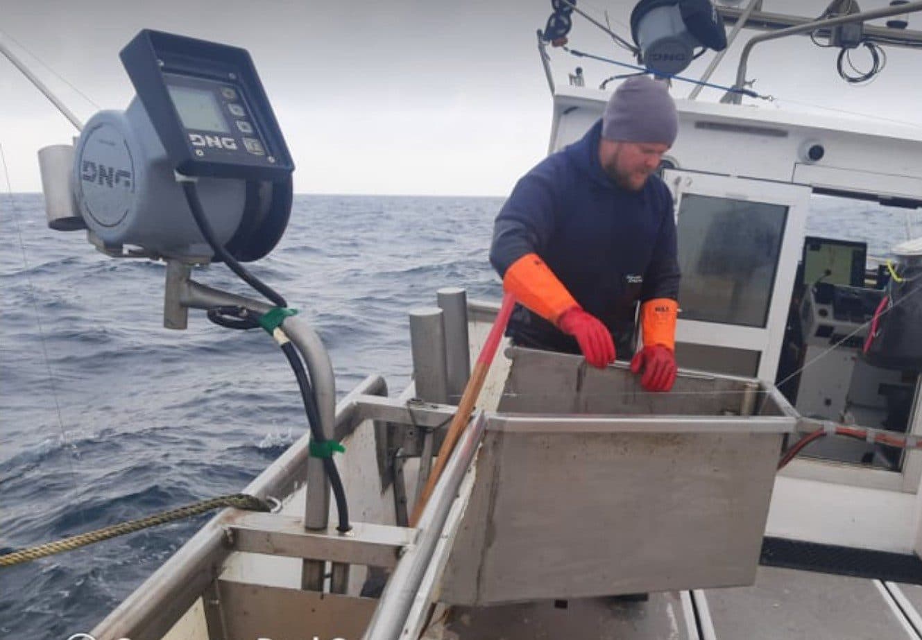 Árni Þór Stefánsson að veiðum um borð í Grími AK. Ljósm. úr safni.