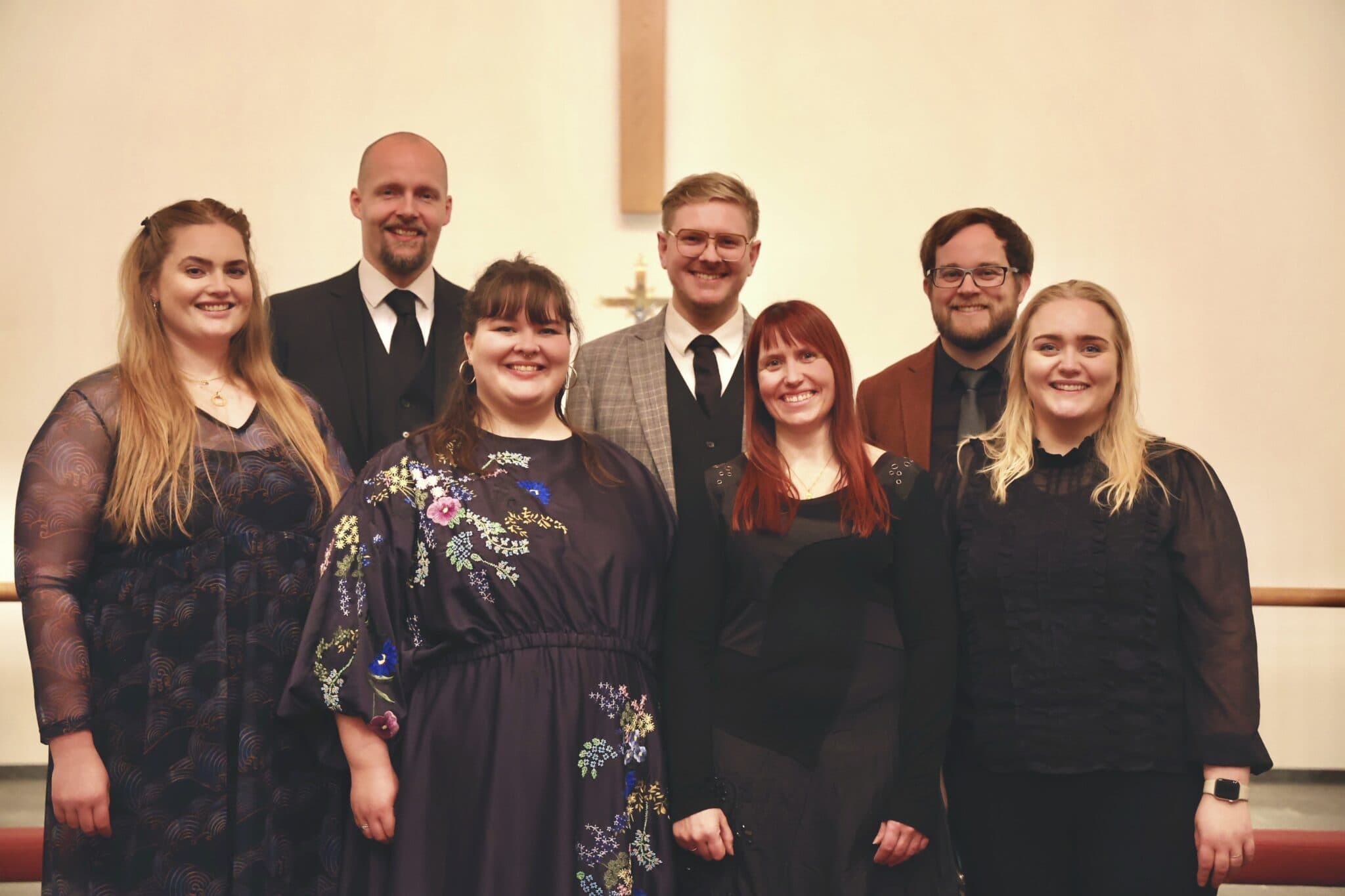 Kammerhópurinn Kvika að loknum upptökum í Reykholtskirkju. Frá vinstri: Ásta Marý Stefánsdóttir, Viðar Guðmundsson, Hanna Ágústa Olgeirsdóttir, Jón Sigurður Snorri Bergsson, Barbara Guðbjartsdóttir, Jóhannes Jónu Guðbrandsson og Steinunn Þorvaldsdóttir.