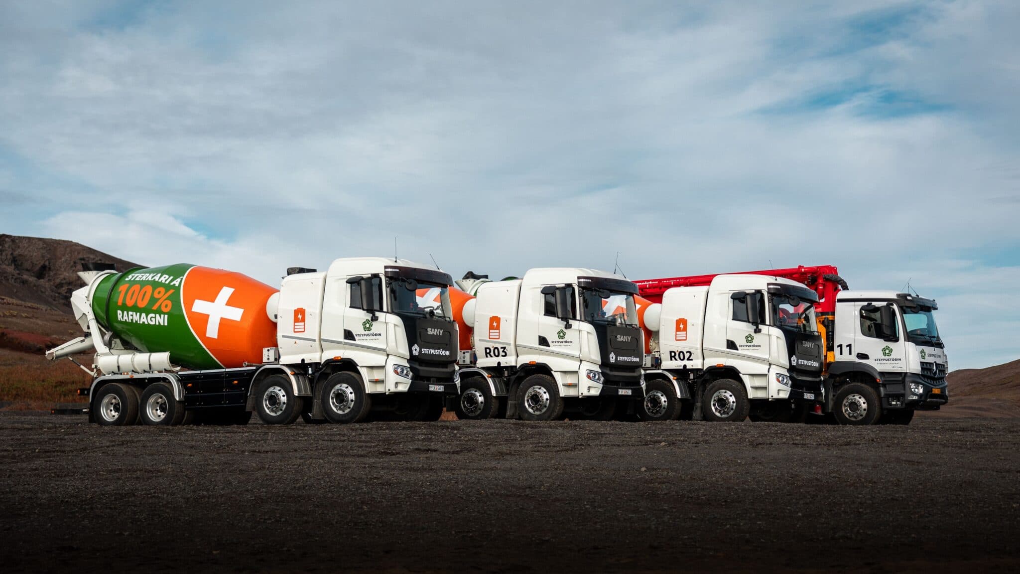 Á innan við ári hefur Steypustöðin fjárfest í og tekið í notkun fimm nýja og rafknúna vörubíla; þrjá steypubíla, steypudælubíl og dráttarbíl. Tveir steypubílanna bættust fyrir fáeinum vikum, en fram kemur í tilkynningu að fyrirtækið ætlar að vinna hratt að orkuskiptum í flotanum og gerir ráð fyrir að árið 2032 verði 70% tækjaflotans rafknúinn að hluta eða öllu leyti.