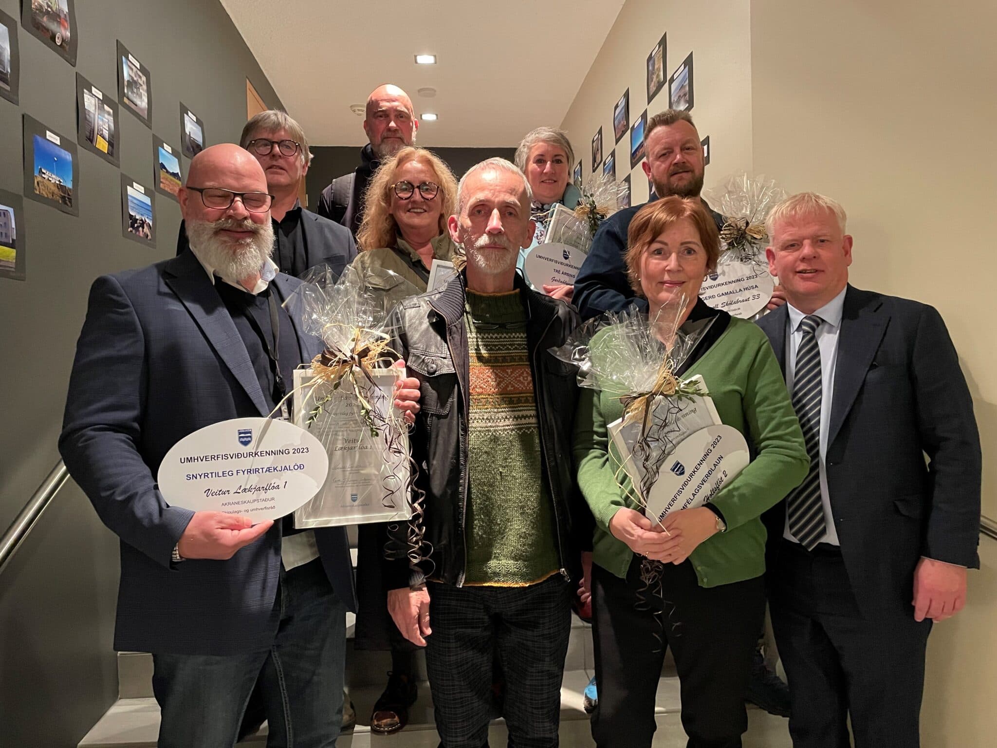 Í gærkvöldi afhenti skipulags- og umhverfisráð Akraneskaupstaðar umhverfisverðlaun kaupstaðarins fyrir árið 2023 og fór athöfnin fram í Tónbergi. Markmiðið með þessum verðlaunum er að efla umhverfisvitund og skapa umhyggju fyrir bænum og umhverfi hans. Einnig að vekja þannig athygli á atriðum sem skipta uppbyggingu og framtíð bæjarins máli. Veitt voru verðlaun í fimm flokkum og voru þau eftirfarandi: