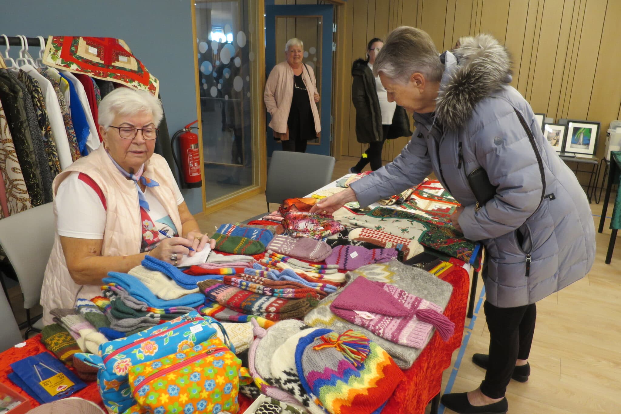 Síðasta föstudag var haldinn markaður á Dalbraut 4 á Akranesi þar sem mikið úrval var til sölu af fallegu handverki. Þá var einnig boðið upp á vöfflur og heitt kaffi var á könnunni. Kolbrún Ingvarsdóttir ljósmyndari Skessuhorns var á ferðinni og tók nokkrar myndir á markaðnum af gestum og gangandi.