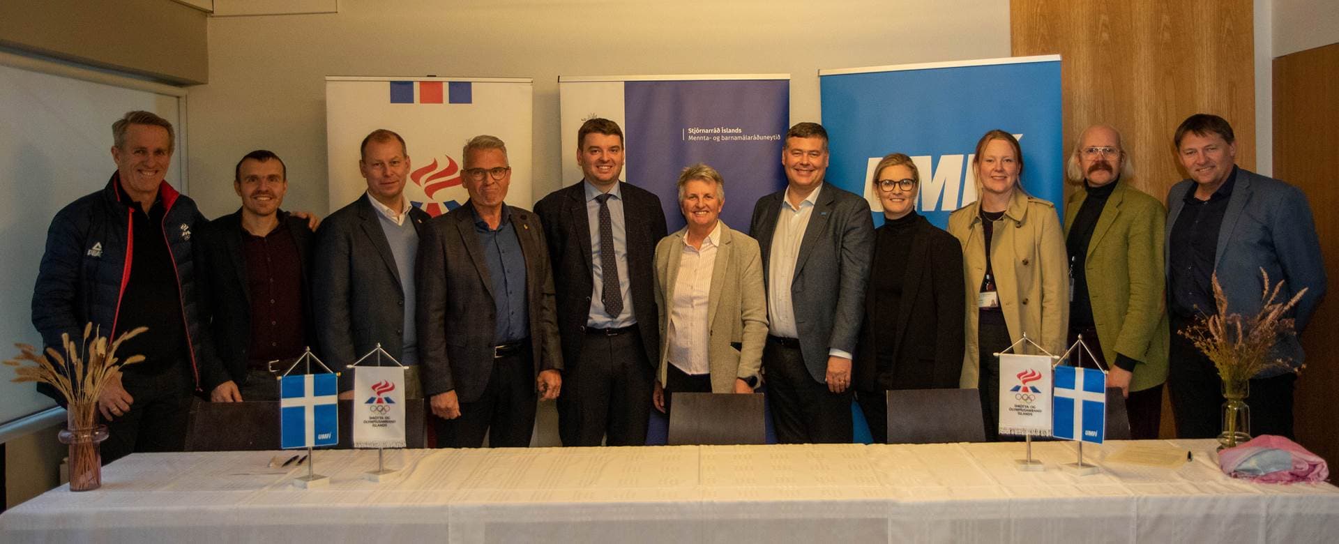 Hópur frá mennta- og barnamálaráðuneyti, Íþrótta- og Ólympíusambandi Íslands og Ungmennafélagi Íslands sem undirritaði viljayfirlýsingu um samstarfið. Ljósm. Stjórnarráðið.