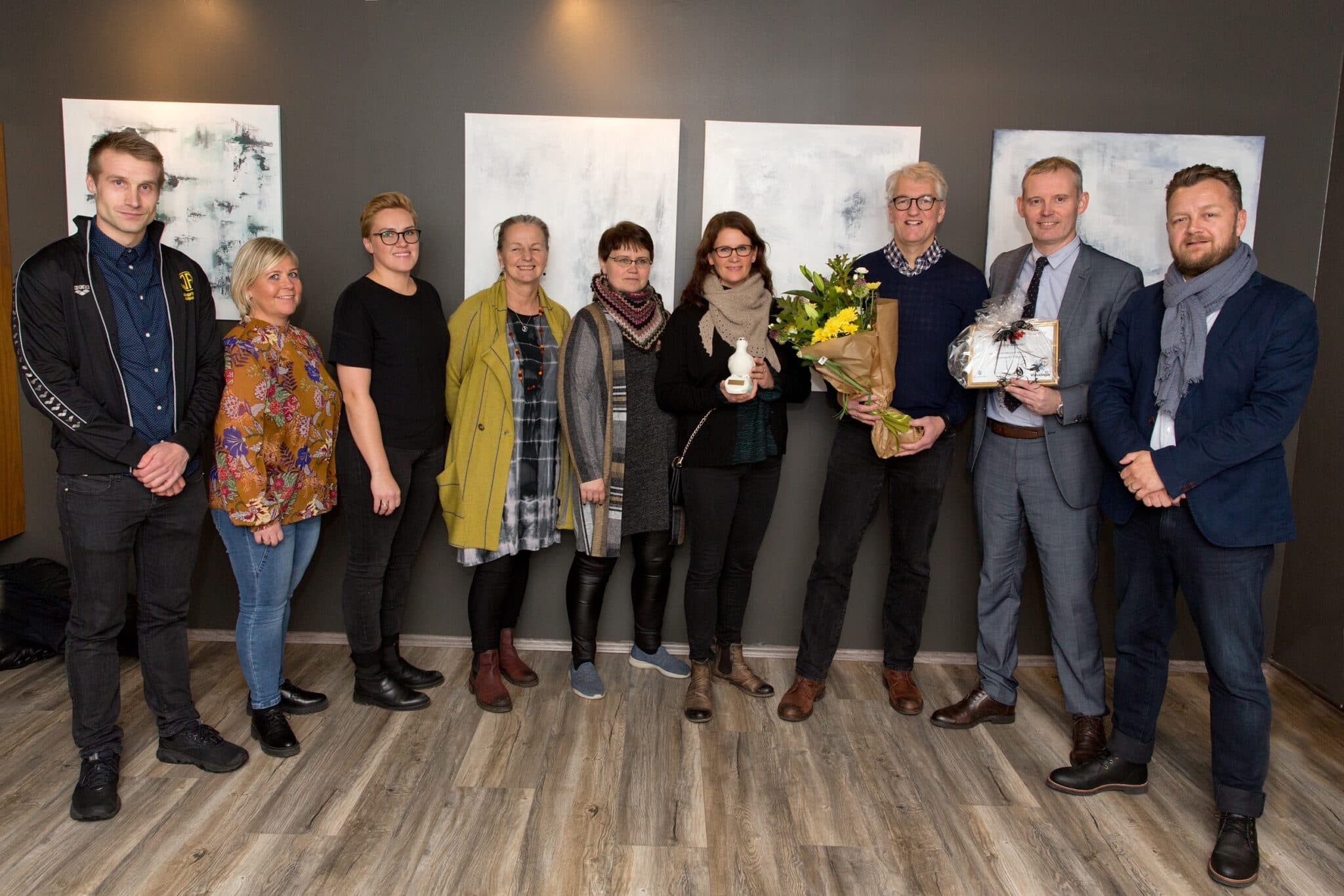 Sundfélag Akraness hlaut árið 2019 Menningarverðlaun Akraness fyrir Útvarp Akraness. Verðlaunin eru veitt þeim einstaklingum eða félagasamtökum sem þykja hafa skarað fram úr á sviði menningar í bæjarfélaginu. Á myndinni eru fulltrúar félagsins ásamt þáverandi bæjarstjóra og formanni menningarnefndar. Ljósm. úr safni Skessuhorns.