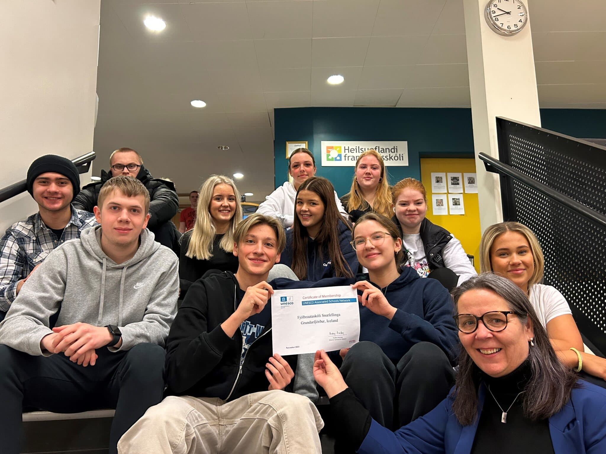 Fjölbrautaskóli Snæfellinga er orðinn UNESCO-skóli. Alls eru UNESCO-skólar hér á landi því orðnir 19 talsins; einn leikskóli, sjö grunnskólar og 11 framhaldsskólar. Sérstök þemavika um heimsmarkmiðin var haldin í Fjölbrautaskóla Snæfellinga í byrjun september. Þemavikan hófst á því að Kristrún María Heiðberg, verkefnastjóri UNESCO-skóla, kom í heimsókn og hélt fyrirlestur um heimsmarkmiðin fyrir nemendur og starfsfólk skólans. UNESCO-skólar er eitt elsta skólanet í heimi, starfrækt frá árinu 1953. Skólarnir eru nú um 12 þúsund talsins og starfa í yfir 180 löndum um allan heim.