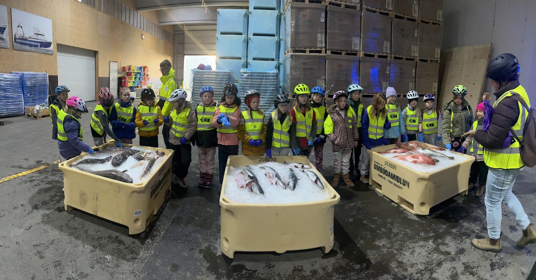 Krakkarnir fengu að skoða og pota og halda á fiskum ef þau vildu. Ljósm. Brekkó