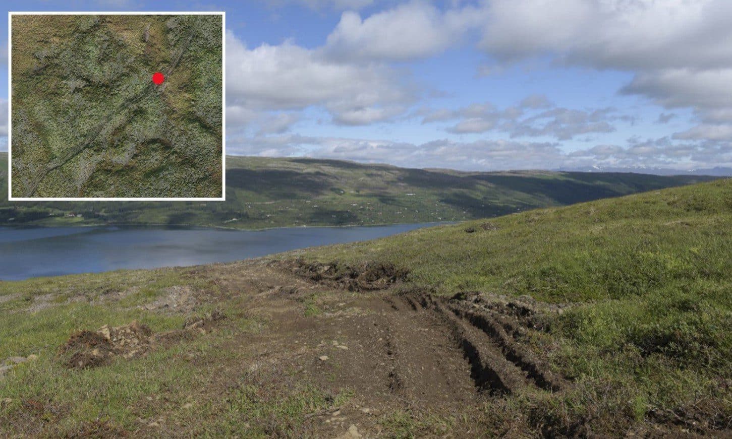 Mynd númer 17 í skýrslu Landgræðslunnar er tekin á svæði D, af slóða sem lagður var um mólendistungu við háöxlina á Dragafelli. Myndin var tekin 20. júlí 2022.