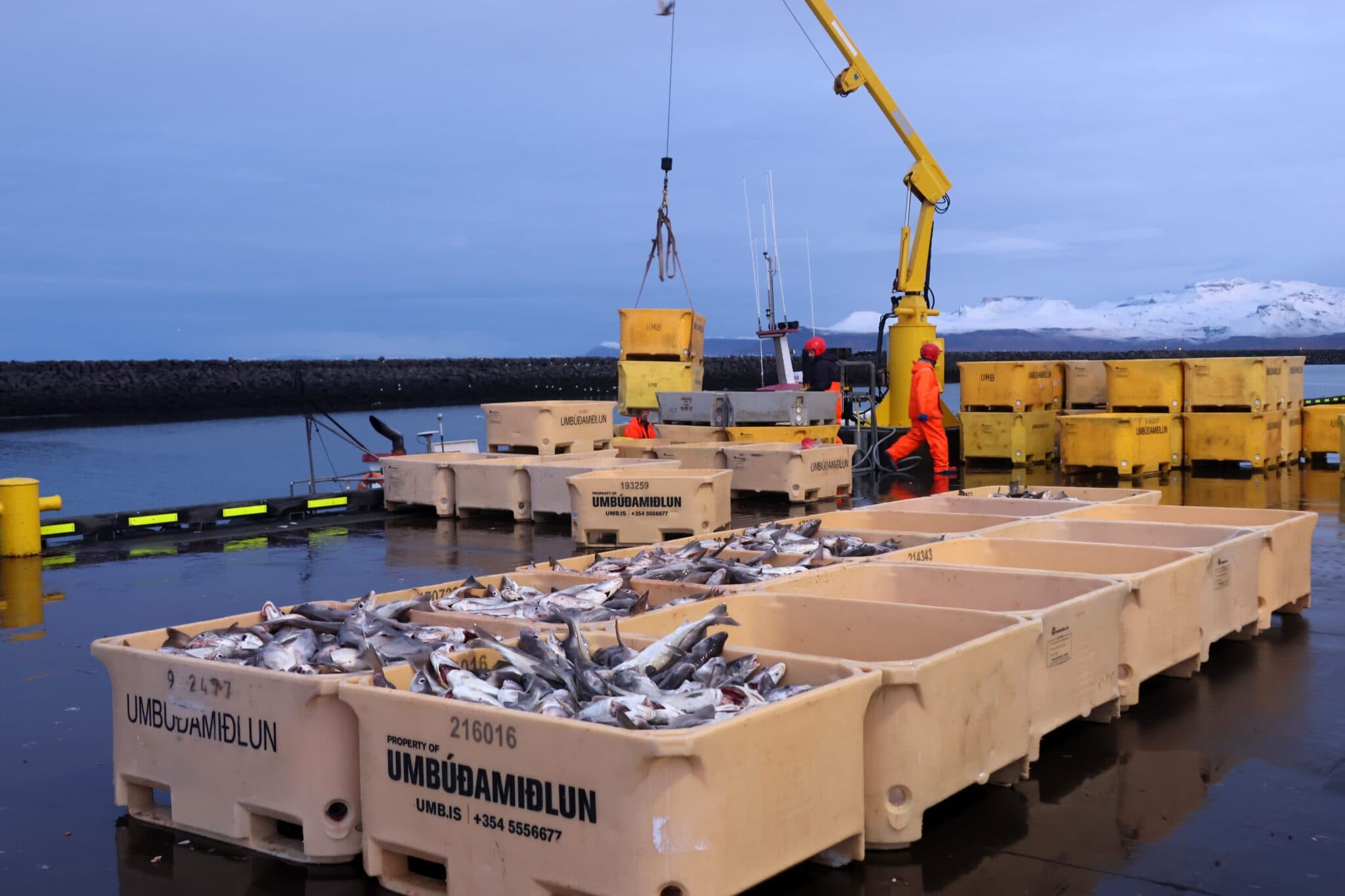 Fiskikör full af ýsu, sem nóg er af á miðunum. Góðri veiði hefur því fylgt tilheyrandi verðlækkun á fiskmörkuðum. Ljósmyndir: AF