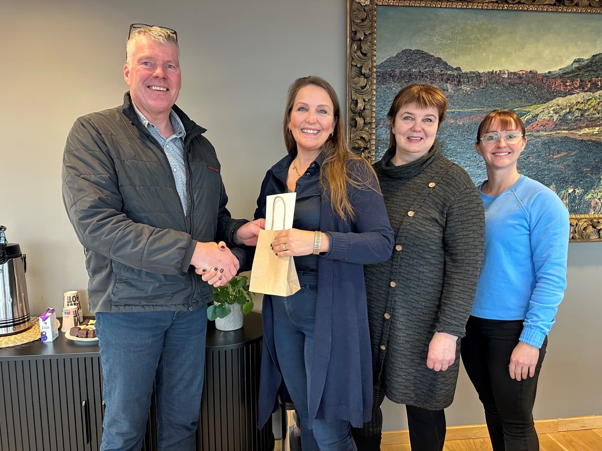 Frá afhendingu styrks Furu til Samhugar í Borgarbyggð. F.v. Gunnar Þór Garðarsson framkvæmdastjóri Furu, Margrét Katrín Guðnadóttir sem er í forsvari fyrir Samhug í Borgarbyggð, Sigrún Ólafsdóttir formaður umhverfis- og landbúnaðarnefndar Borgarbyggðar og Sóley Birna Baldursdóttir deildarstjóri. Ljósm. mm